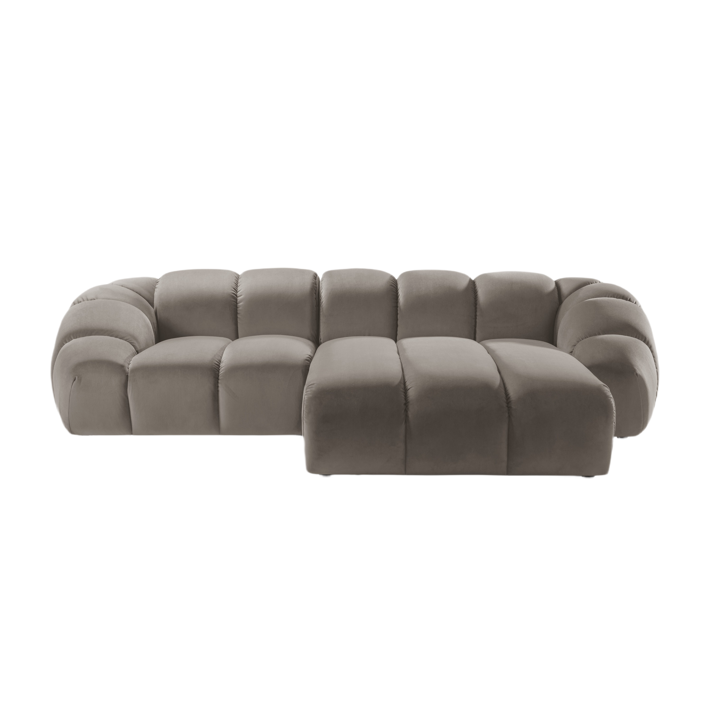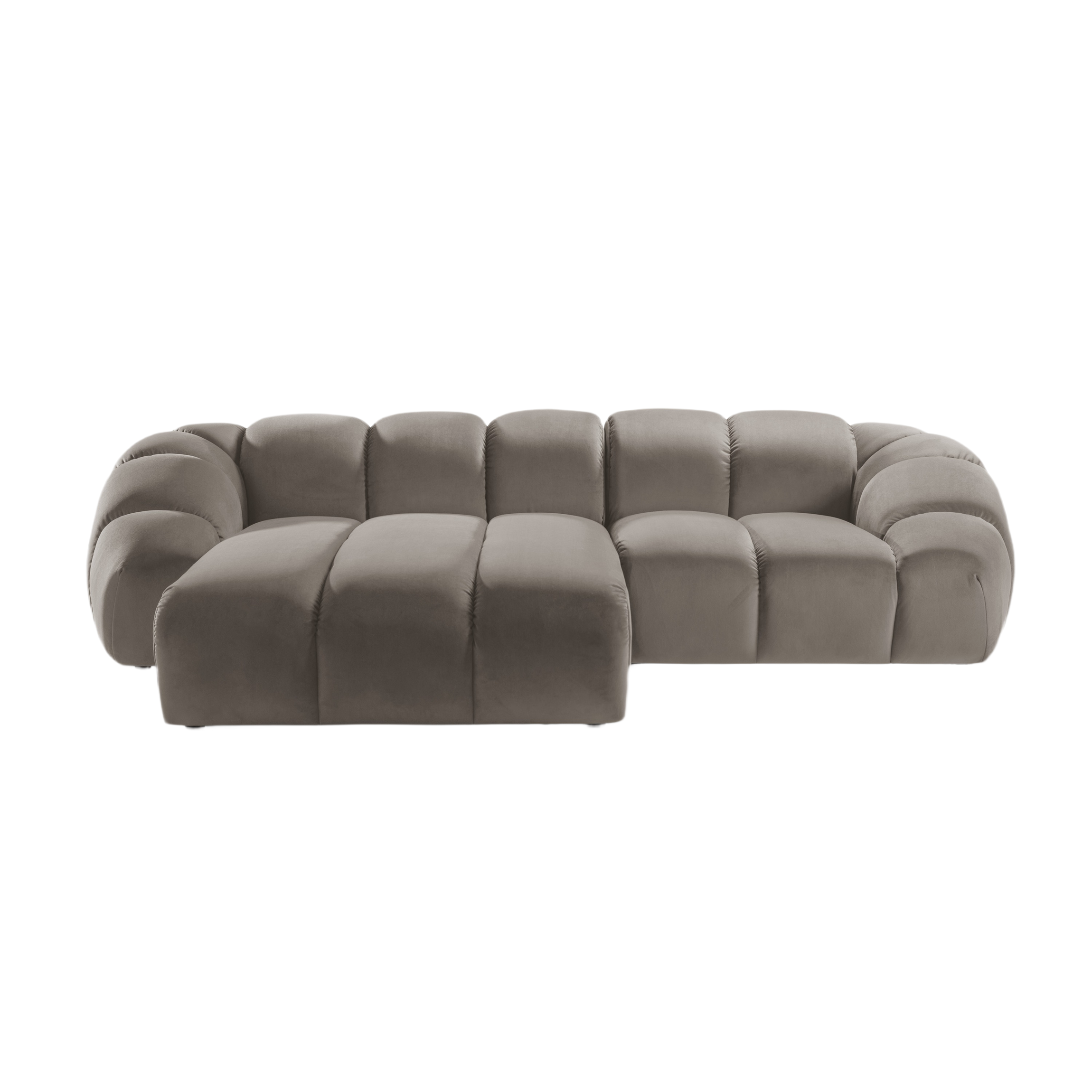 Fluwelen hoekbank voor 3 personen, links, DIANA, grijsbruin