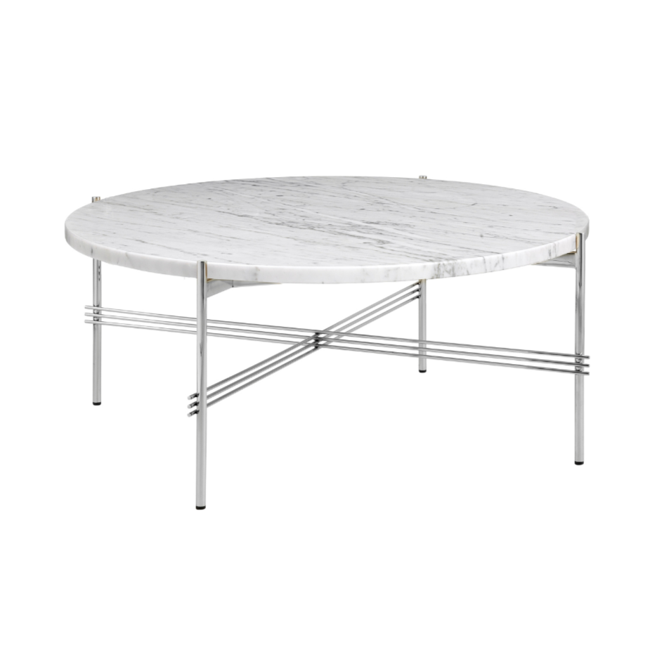 Ronde salontafel TS van wit marmer met verchroomde voet