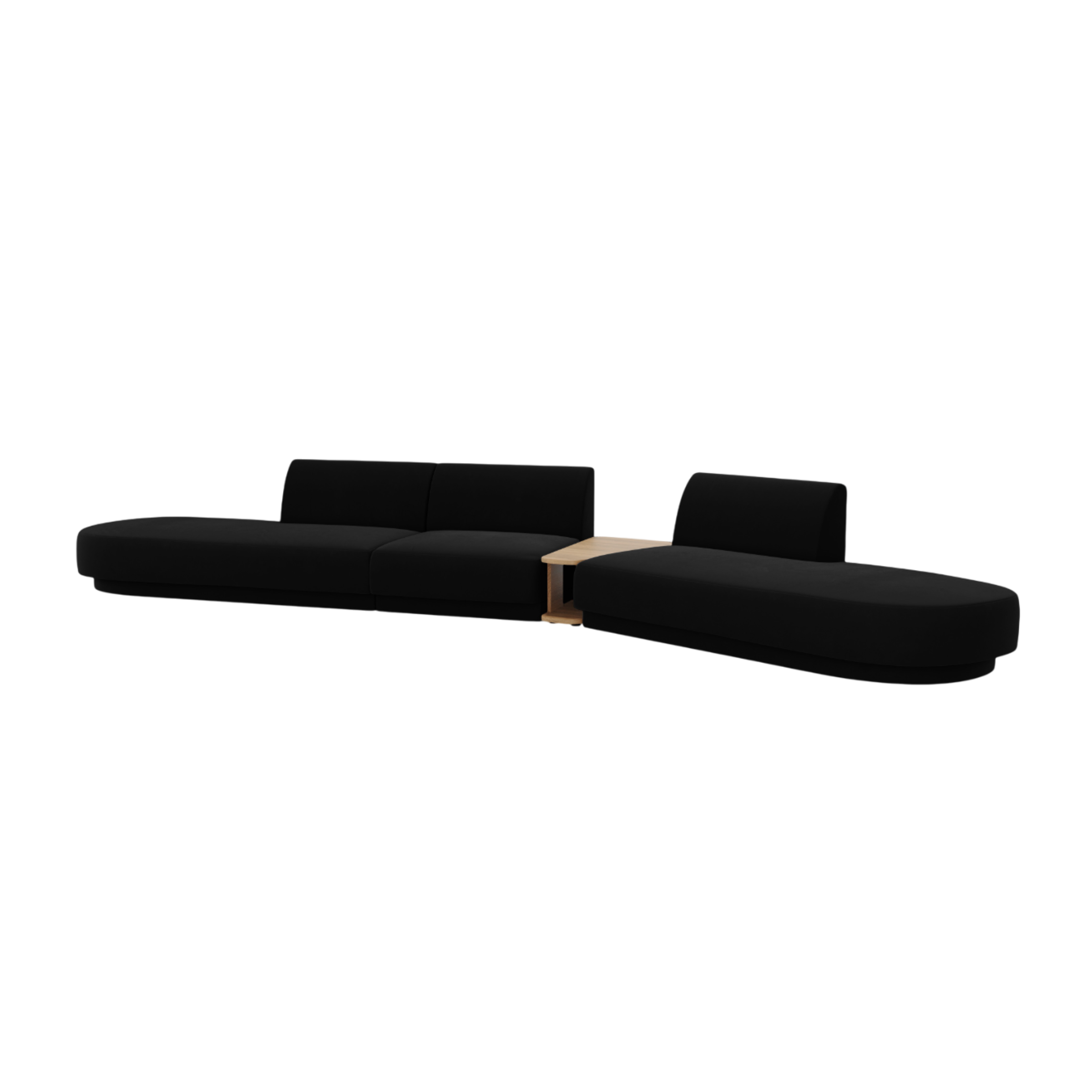 Modulaire bank met rechtszijdige armleuning en tafel, 4-persoons, fluweel MILEY, zwart