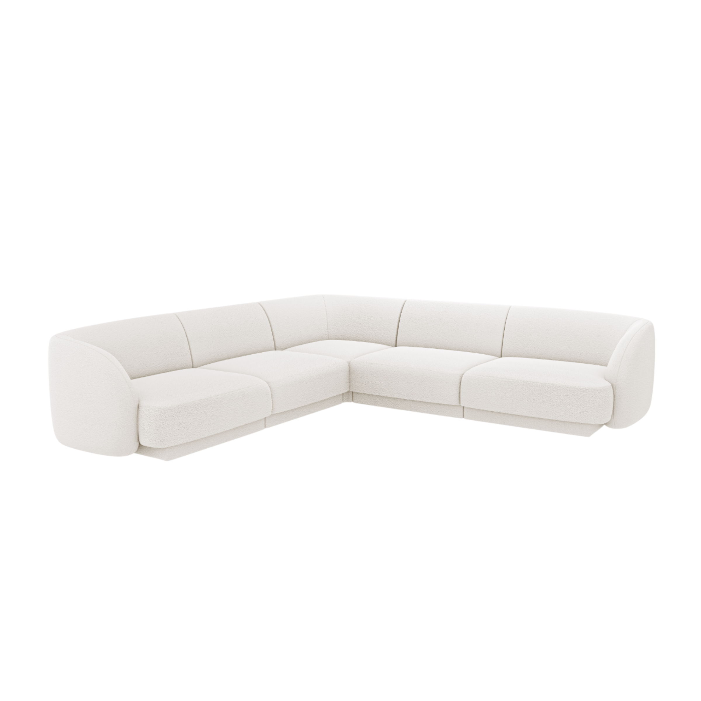 Symmetrische hoekbank voor 5 personen MILEY witte boucle