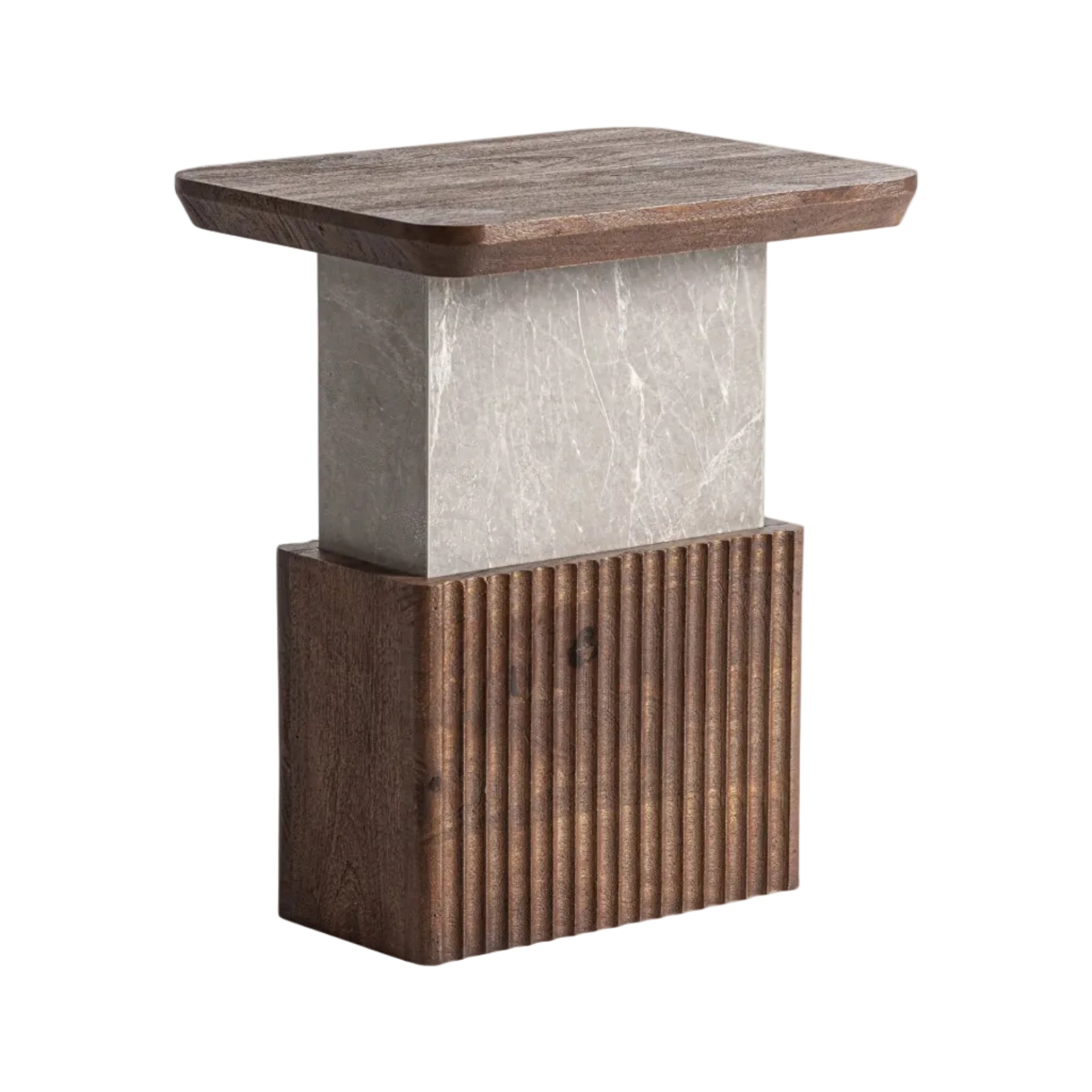 Bijzettafel SKORUP gerecycled hout met marmeren blad