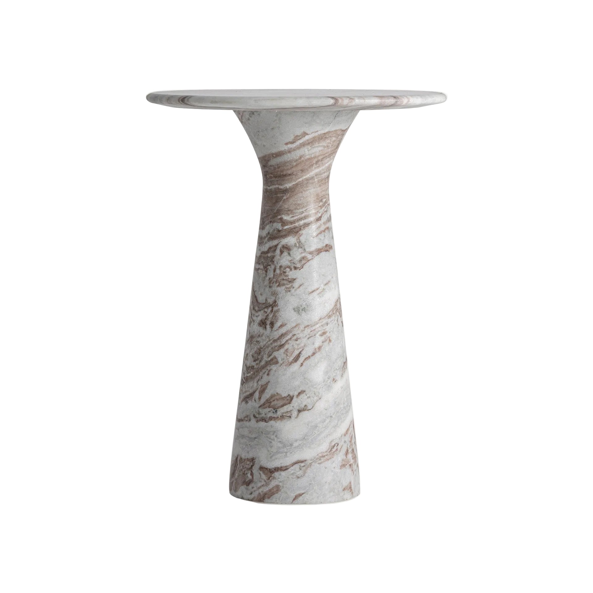 Zijtafel SAMSUN van gerecycled grenenhout met een marmeren blad