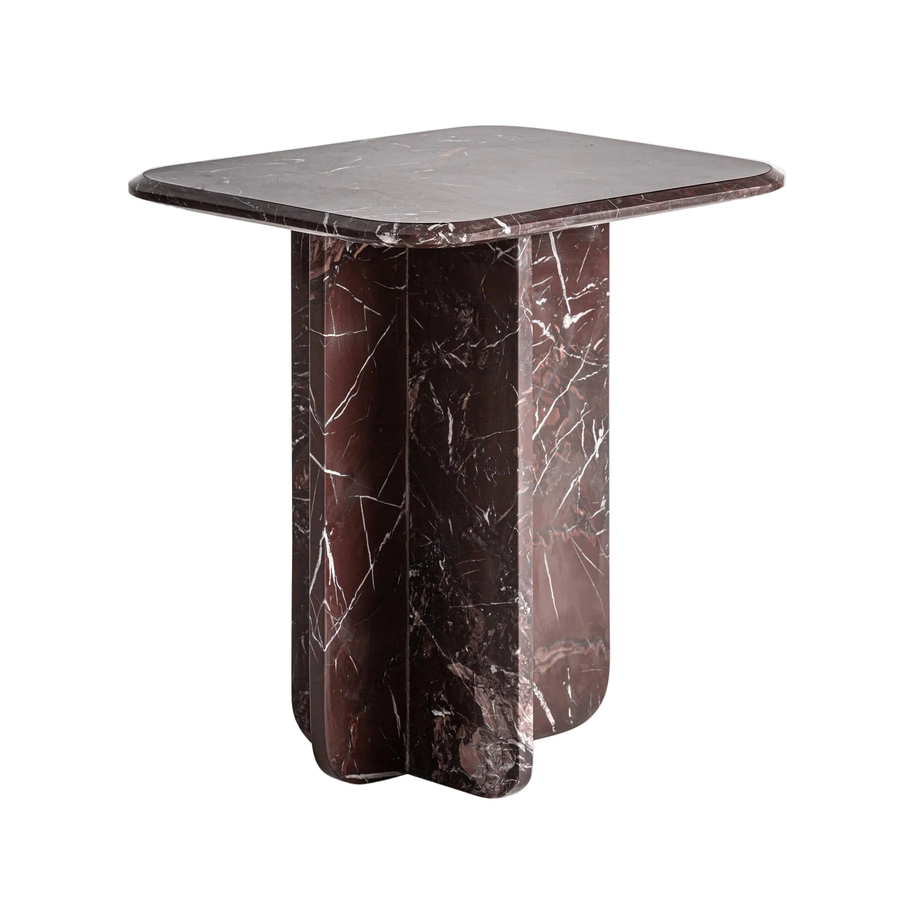 PLYO bijzettafel bordeaux met stalen basis en marmeren blad