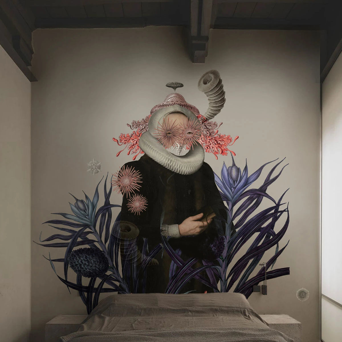 Tapeta flizelinowa z motywem morskim CORAL MIRAGE zielony z koralowym