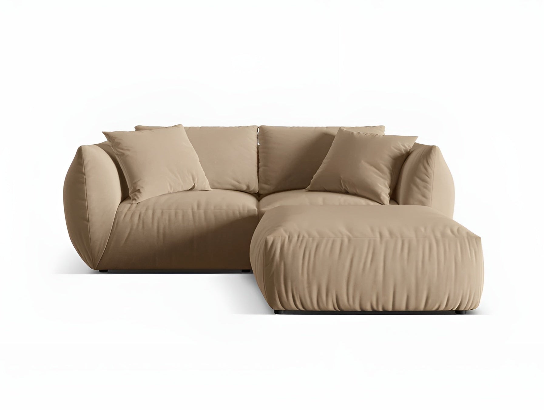 4-sitziges, rechtsseitiges Ecksofa DIANA in dunkelbeigem Chenille