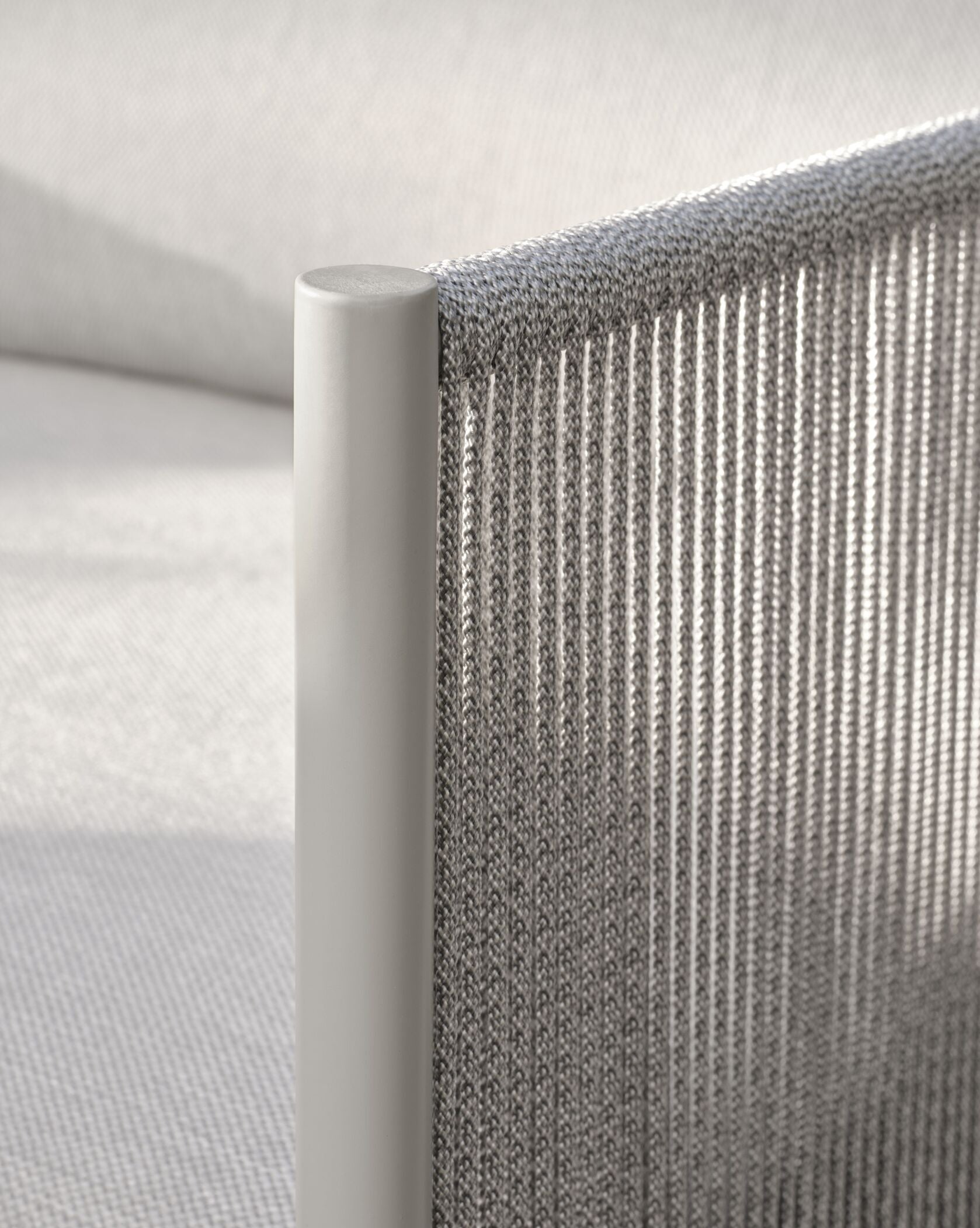 Außensofa Track ist ein eleganter Vorschlag für die luxuriöse Freizeit im Freien. Die Konstruktion basiert auf einem festen, linearen Metallrahmen, in dem weiche, gepolsterte Kissen platziert werden, um einen einzigartigen Komfort zu gewährleisten. Eines der anspruchsvollsten Elemente des Projekts sind Armlehnen, die von Hand mit einer Schnur abgerissen werden, die nicht nur Leichtigkeit und Stil verleiht, sondern auch das Metall schützt, das bei niedrigen Temperaturen in der Sonne auferlegt oder abkühlt kann. Dank dieser innovativen Konstruktion Sofa Es sieht extrem elegant aus und seine Details erzeugen schöne Schatten in einem natürlichen Licht.