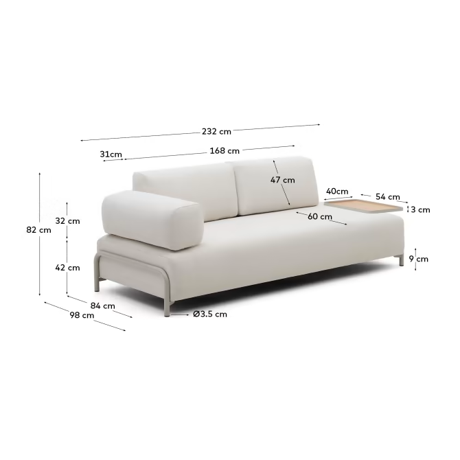 Sofa 3-osobowa z dużą tacą COMPO beżowy szenil La Forma    Eye on Design