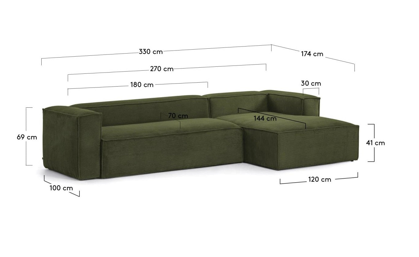 Narożnik 4-osobowy prawostronny BLOK zielony sztruks La Forma    Eye on Design