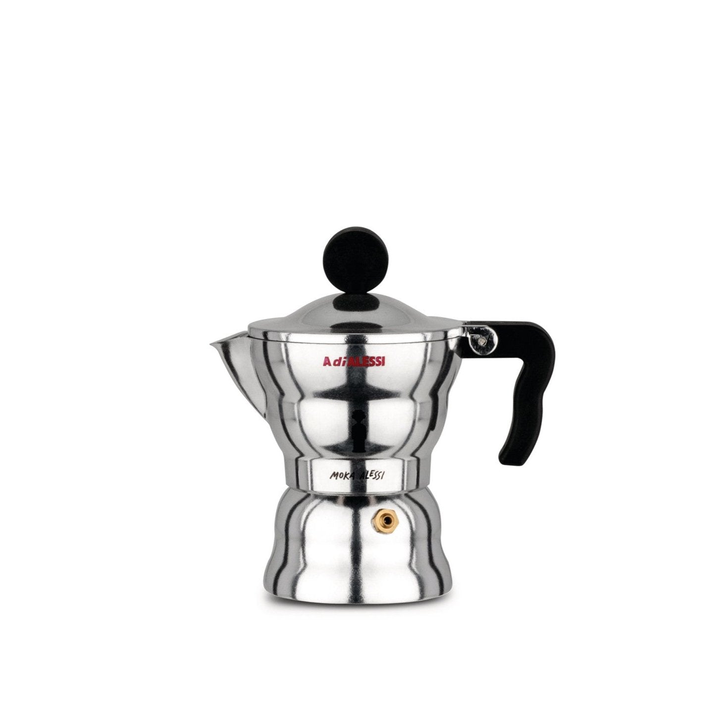 Kaffee Moka Alessi, entworfen von Alessandro Mendini, ist durch eine abgerundete Form gekennzeichnet, die sich auf das traditionelle Moka -Café bezieht. Es besteht aus Aluminiumguss und ist mit einem ergonomischen Griff und einem thermoplastischen Harzknopf ausgestattet, der die Bequemlichkeit des Gebrauchs gewährleistet. Dies ist eine echte Hommage an das tägliche Ritual des Kaffeebrauens, das klassisches Design mit Funktionalität kombiniert und eine einzigartige Erfahrung jeder Tasse Espresso schafft.