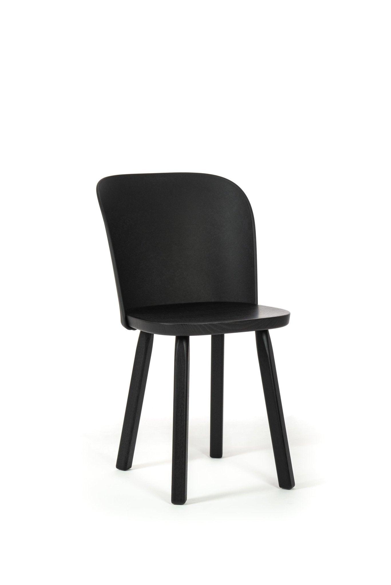 Schwarzer Stuhl Alpina hat einen ergonomisch profilierten Sitz, der Komfort und Komfort des Gebrauchs bietet. Die einfache Form von Sitz und Rückenlehne ist äußerst ästhetisch und passt harmonisch in einen minimalistischen Stil, der derzeit einer der modischsten Trends in der Innenausstattung ist.