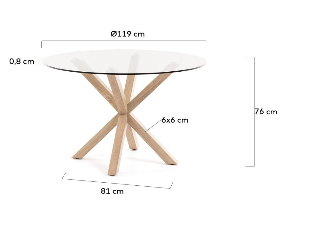 Runder Tisch Argo mit Glasplatte und einer Basis, die Holz imitiert, ist die perfekte Harmonie aus modernem Design und Funktionalität. Seine einzigartige Basis mit sich kreuzenden Stahlbeinen, die mit einem Holz-Effekt versehen sind, verleiht dem Tisch Eleganz und Stabilität und schafft einen subtilen Akzent in jedem Raum.