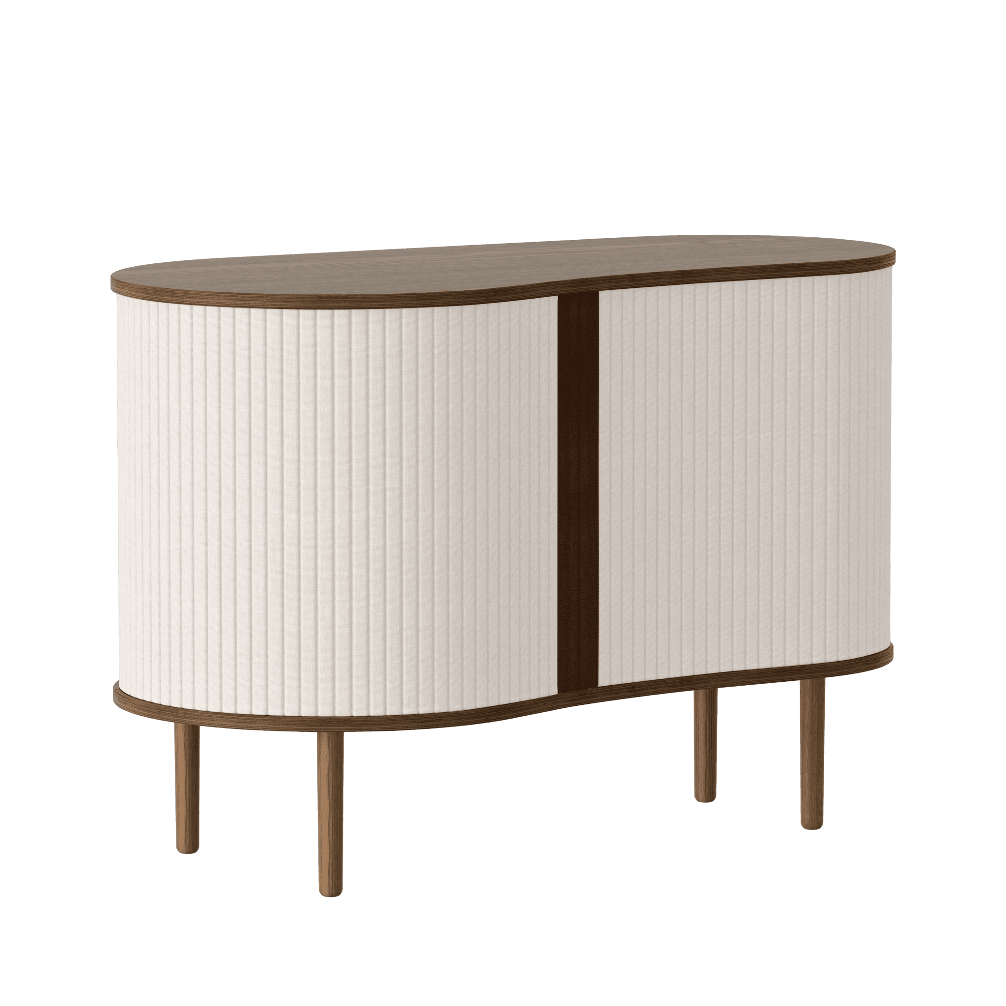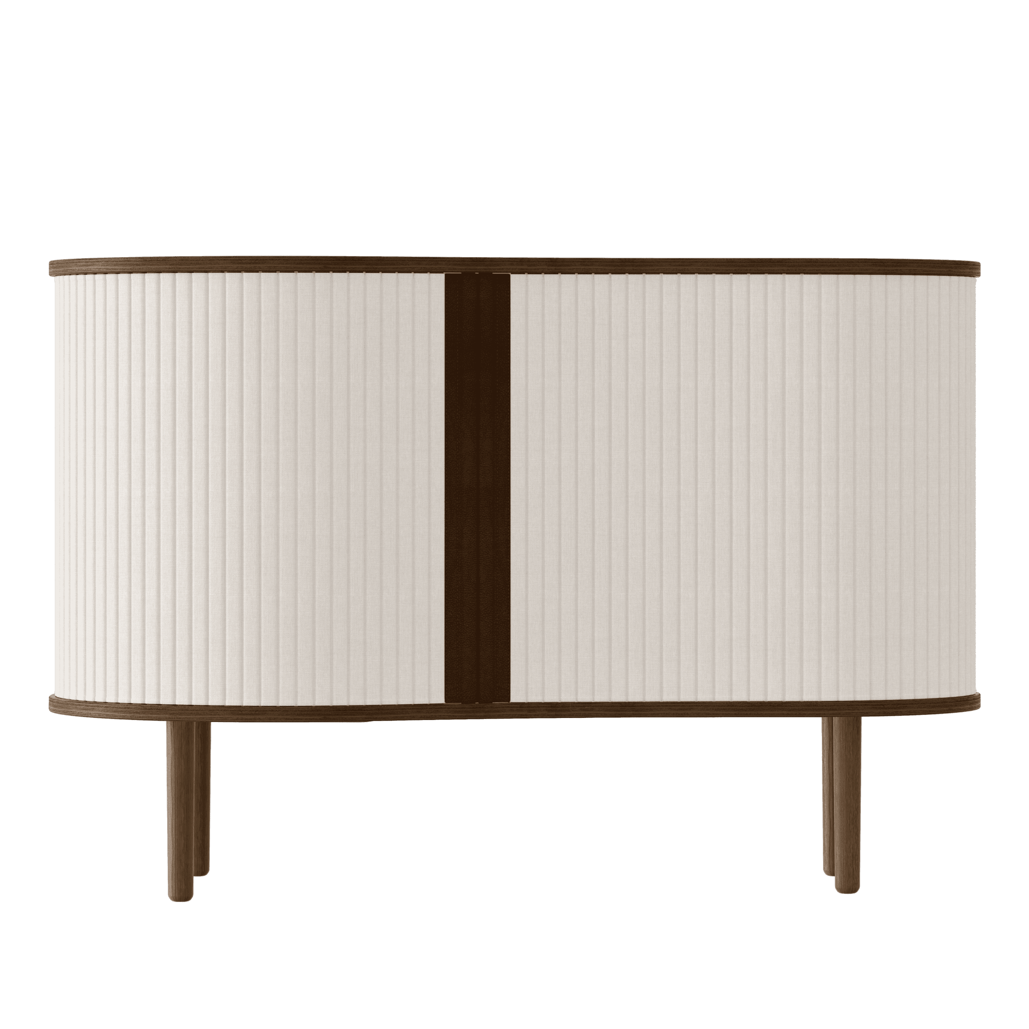 Kommode Es ist in drei ausdrucksstarken Farben erhältlich: Eiche, Dunkle Eiche und schwarze Eiche, mit Jalousien, die in sorgfältig ausgewählten Horizonts -Stofftönen erhältlich sind, die ausschließlich aus Recycling stammen. Wichtig ist, dass die Jalousien austauschbar sind, was bedeutet, dass Sie sie leicht selbst ändern können, wodurch die Möbel ein neues Aussehen verleihen und das Design erfrischen können, ohne völlig neue Möbel kaufen zu müssen. Dank dessen sparen Sie nicht nur globale Ressourcen, sondern erweitern auch die Lebensdauer der Möbel.
