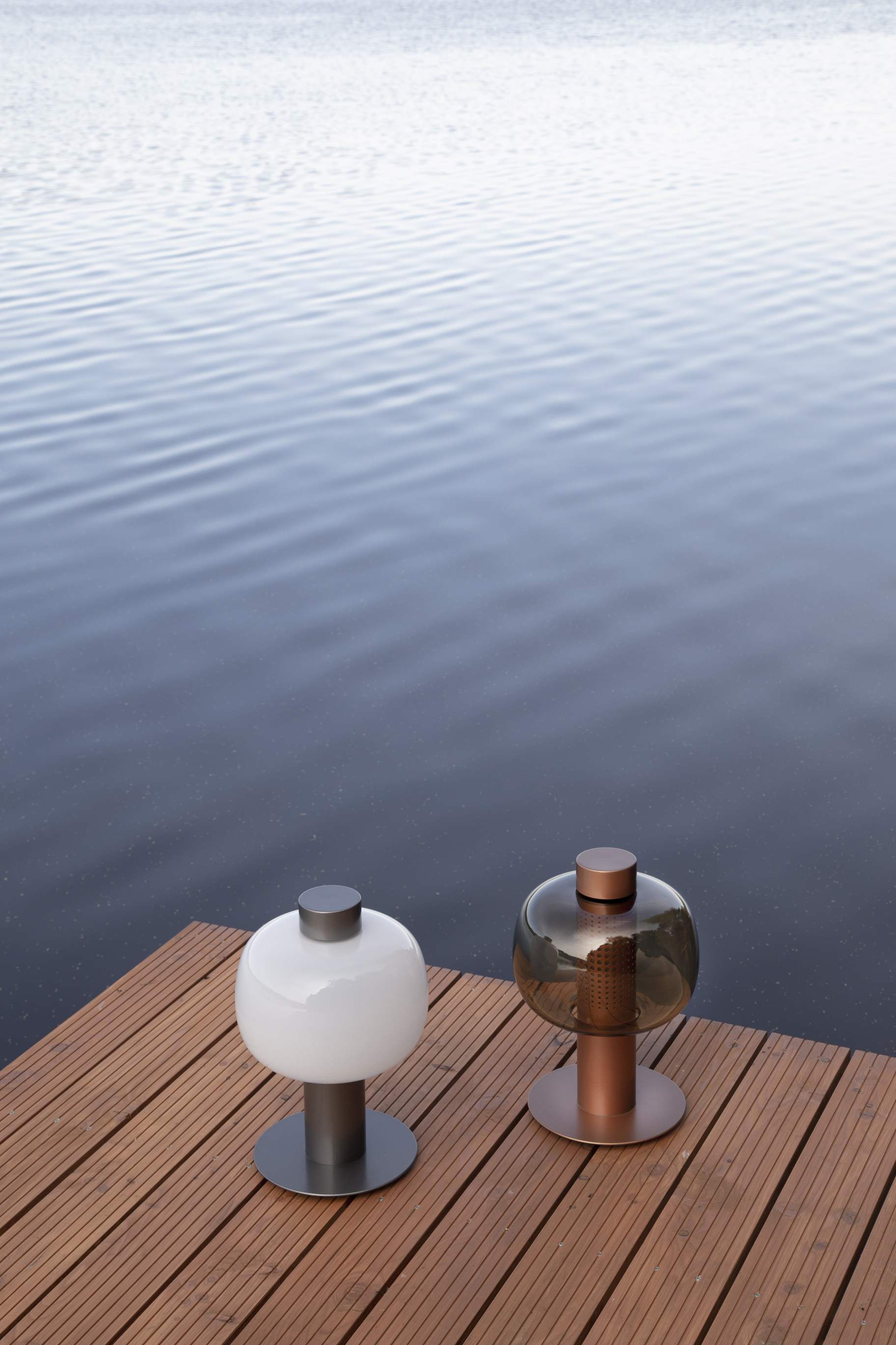 Diese Lampe entspricht der IP44-Norm, hat einen Sockel aus Edelstahl mit umweltfreundlicher Pulverbeschichtung und einen Schirm aus geblasenem Glas, was ihr das Aussehen einer traditionellen Bonbori-Lampe verleiht. Erhältlich in Optionen mit opalem Glas und verschiedenen Farben des Sockels, ist sie für den Anschluss über unterirdische Verkabelung konzipiert.