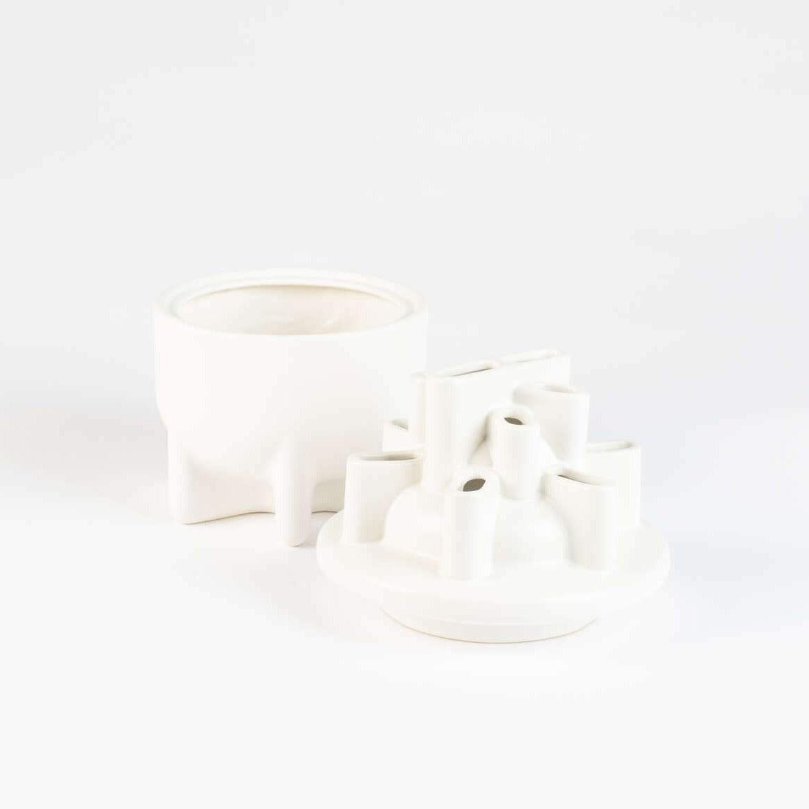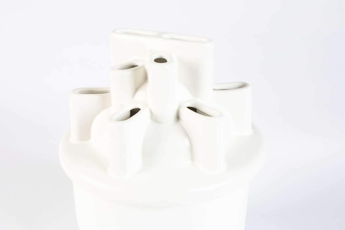 Weiße Vase Das Bassin ist aus hochwertiger Keramik gefertigt mit besonderer Sorgfalt für alle Details, selbst die sehr kleinen. Seine weiße Farbe verleiht ihm eine unglaubliche Eleganz und passt zu jeder Farbgestaltung des Raumes.