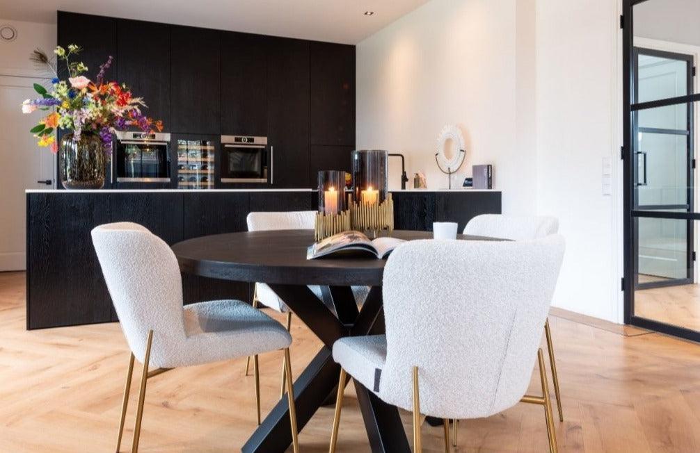 Richmond Interiors ist eine niederländische Marke mit einer langen Tradition, die kontinuierlich luxuriöse Möbel, Beleuchtung und Accessoires anbietet. Die Designer kombinieren die neuesten Einrichtungstrends mit Inspirationen aus fernen Reisen und dem Glamour-Stil. Jedes Produkt, von Tischen und Stühlen bis hin zu Spiegeln, Kerzenhaltern und Wanduhr, begeistert durch seine Verarbeitungsqualität.