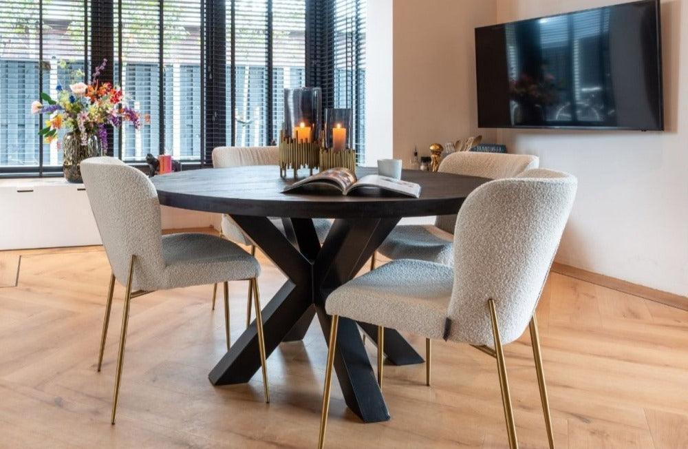 Speisesader Odessa ist ein elegantes und einzigartiges Möbelstück, das nicht nur während der Mahlzeiten Komfort bietet, sondern auch einen zusätzlichen Charme Ihres Raumes. Sein Bouclé -Stoff mit einem schönen weißen Schatten verleiht ihm einen einzigartigen und modischen Look. Bouclé Polstery ist der letzte Hit der Saison, was den Odessa -Stuhl zu einer idealen Wahl für diejenigen macht, die über die neuesten Innenräume auf dem Laufenden sein möchten.
