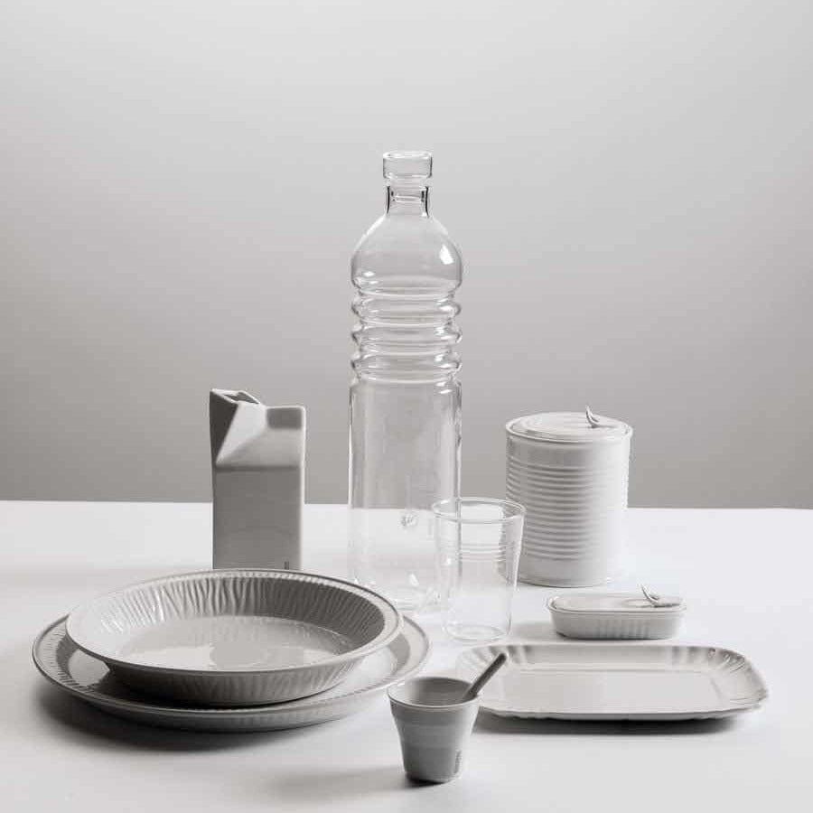 Eine Linie von Boroczeralglasgefäßen, die Seletti auf der ganzen Welt vorstellte. Die Formen sind einfach und inspiriert von Einwegprodukten. Sie machen die unerwarteten täglichen Gegenstände zu einem Design.