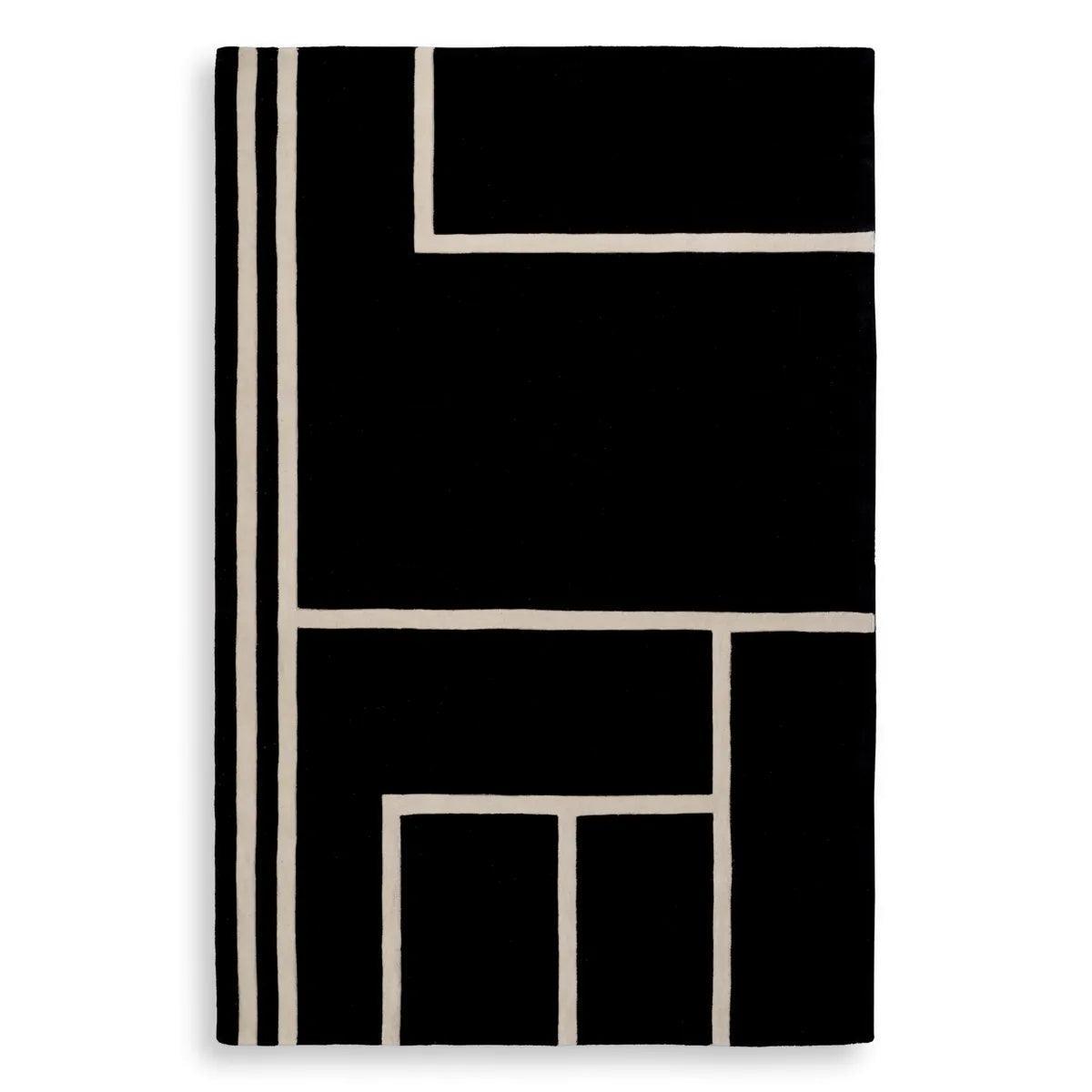 Handgefertigt, um die besten Ergebnisse zu erzielen, Designerteppich Omar präsentiert ein mutiges geometrisches Muster in kontrastierenden Schatten von schwarzem und zerbrochenem Weiß. Es ist nicht nur ein funktionales dekoratives Element, sondern auch ein Wort für einen persönlichen Stil und Eleganz.