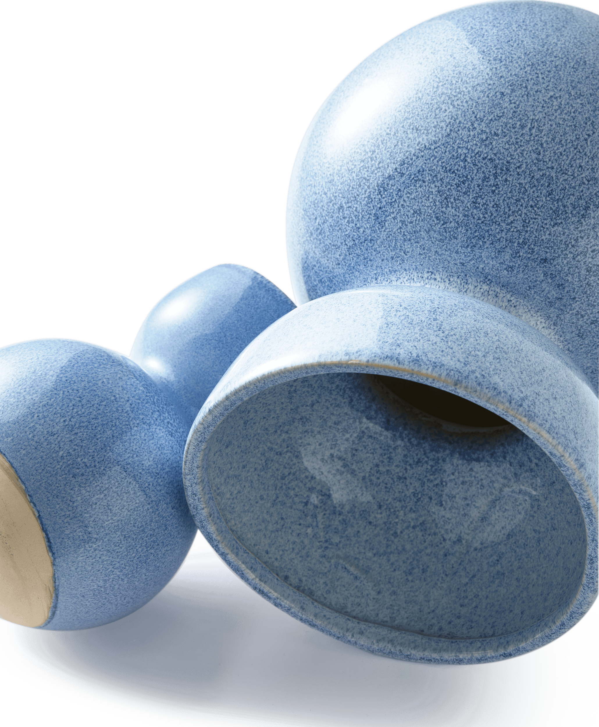 Vase Boolb in Blue ist ein absolut einzigartiges Element der Ausrüstung. Dank der handbedeckten reaktiven Glasur ist jede dieser Vasen einzigartig und einzigartig. Ihre Einzigartigkeit resultiert aus alten orientalischen Techniken, die sowohl im Verglasungsprozess als auch in der Erzeugung von Form verwendet wurden.