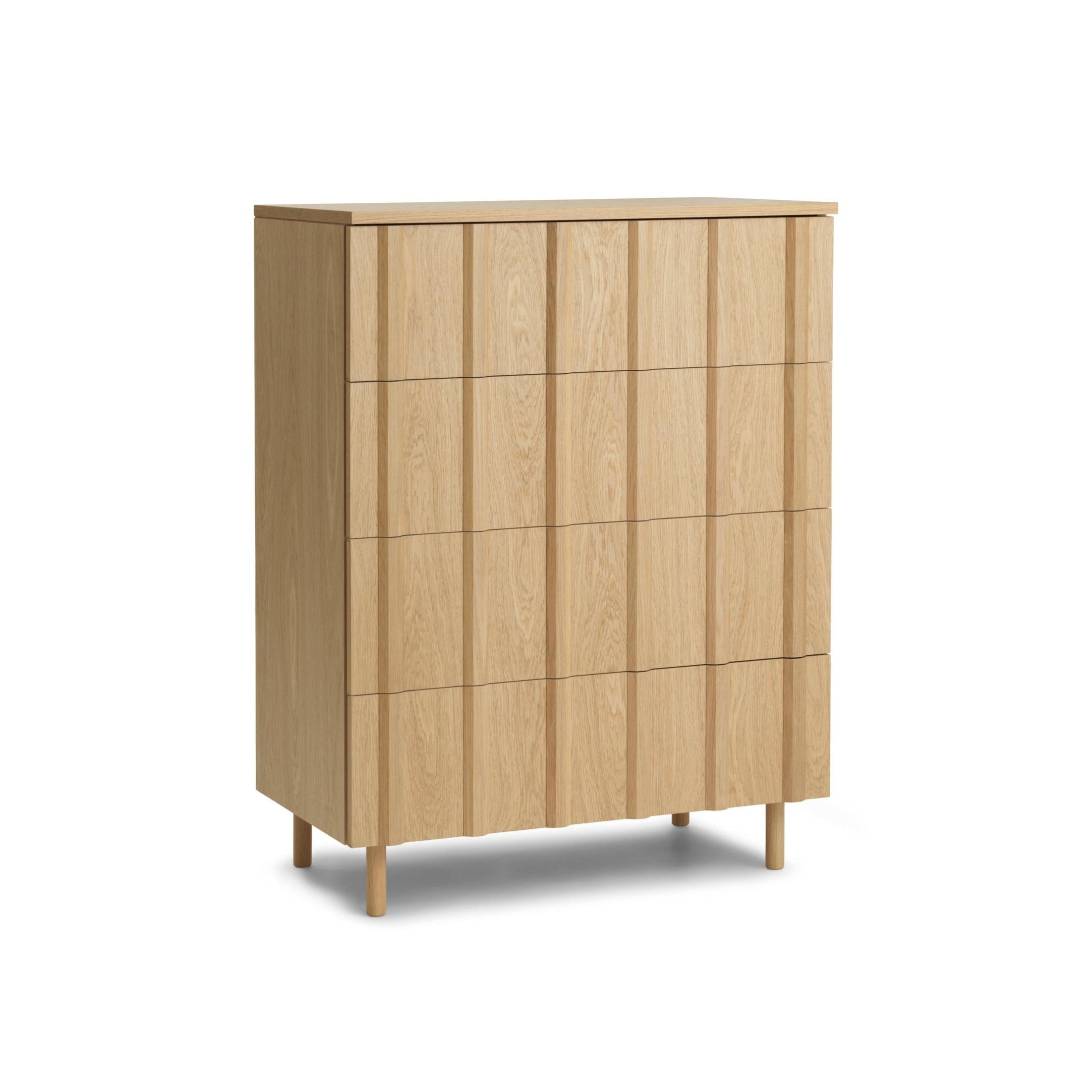 Die Rippenverträge bestehen aus lackierter Eiche und festem Holzfurnier und kombiniert Haltbarkeit mit einem natürlichen, raffinierten Erscheinungsbild. Die nachdenkliche Anordnung von geräumigen Schubladen und Schränken bietet einen optimalen Speicherplatz und macht ihn sowohl zu einer ästhetischen als auch zu einer praktischen Ergänzung des Innenraums. Dank der minimalistischen Form und der hochwertigen Materialien wird die Truhe der Schubladen in modernen, skandinavischen und klassischen Arrangements perfekt zu finden.