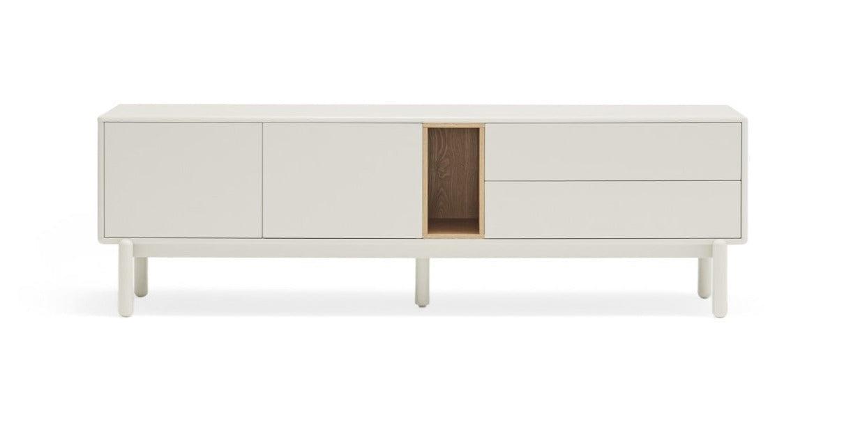 Minimalistische Beine verleihen der gesamten Form Leichtigkeit. Die cremige Farbe passt hervorragend in nahezu jedes Interieur. Wenn Sie nach einem beeindruckenden RTV-Schränke für das Wohnzimmer, um auf Corvo zu setzen.