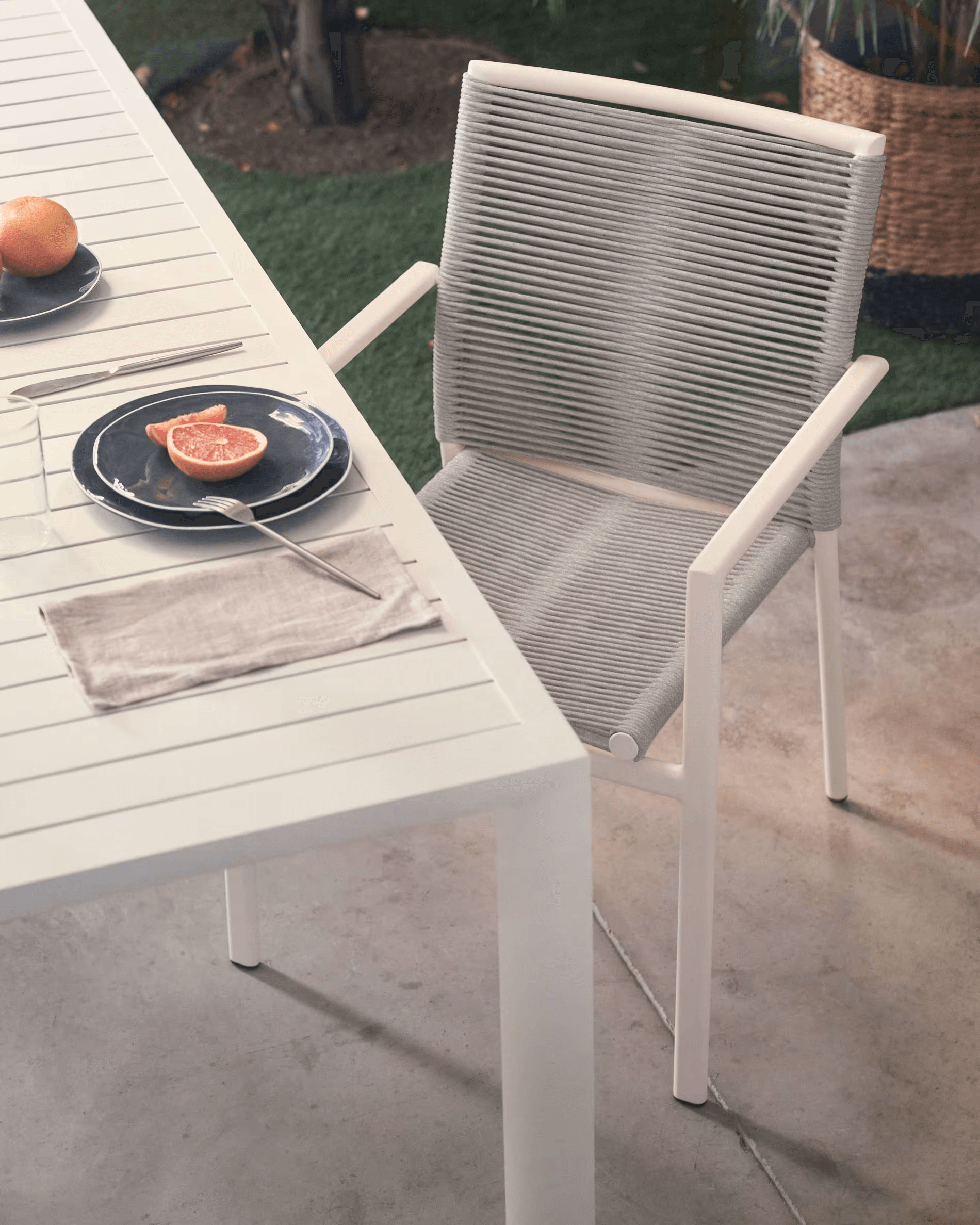 Die Culip -Kollektion wurde so konzipiert, dass sie zum Stern Ihres Esszimmers im Freien wird. Genießen Sie es ohne Angst, weil es aus 100% Aluminium besteht. Die beste Gastgeberin für Sommeressen.