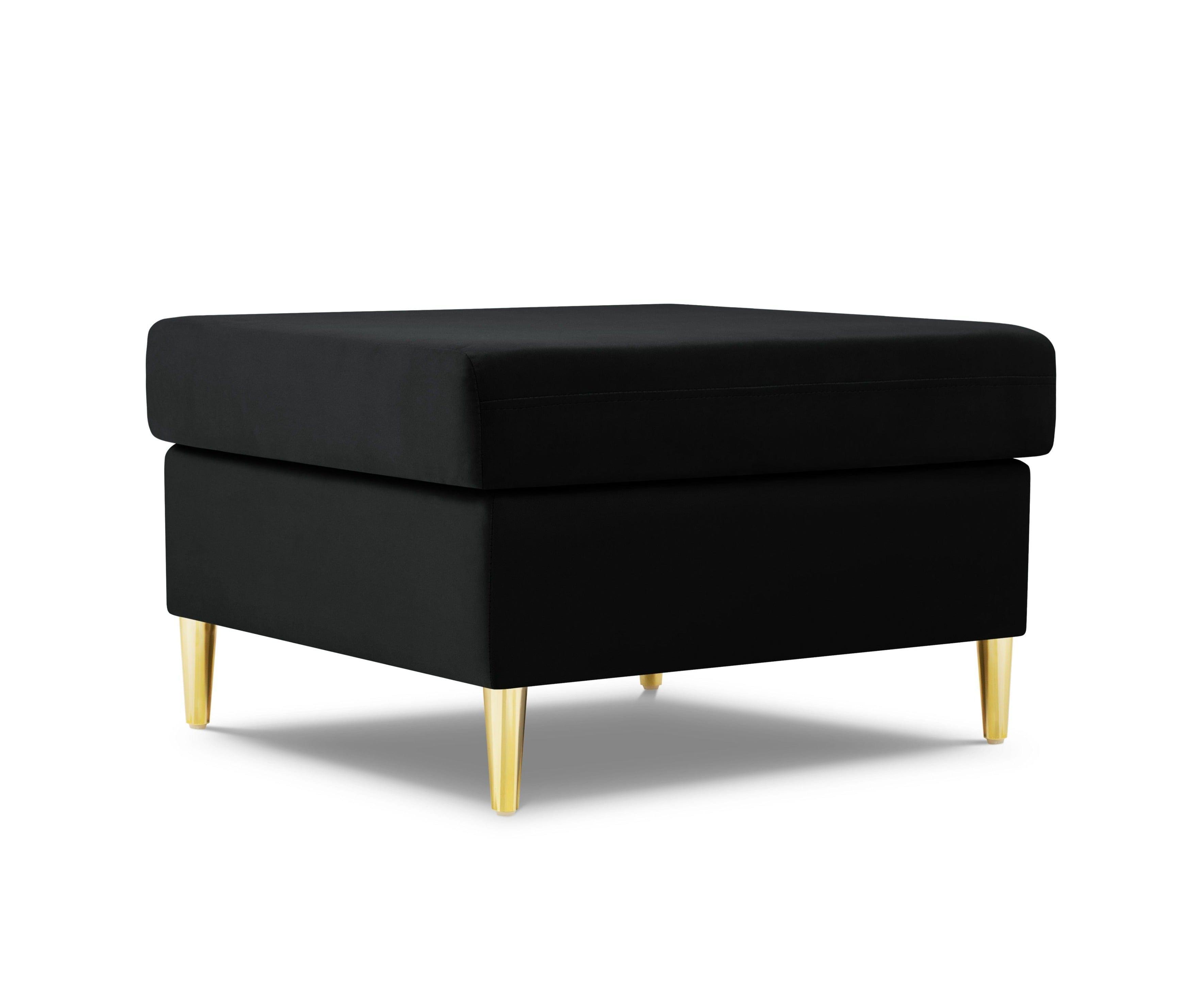 Cyoto Black Velvet Pouf mit einer goldenen Basis