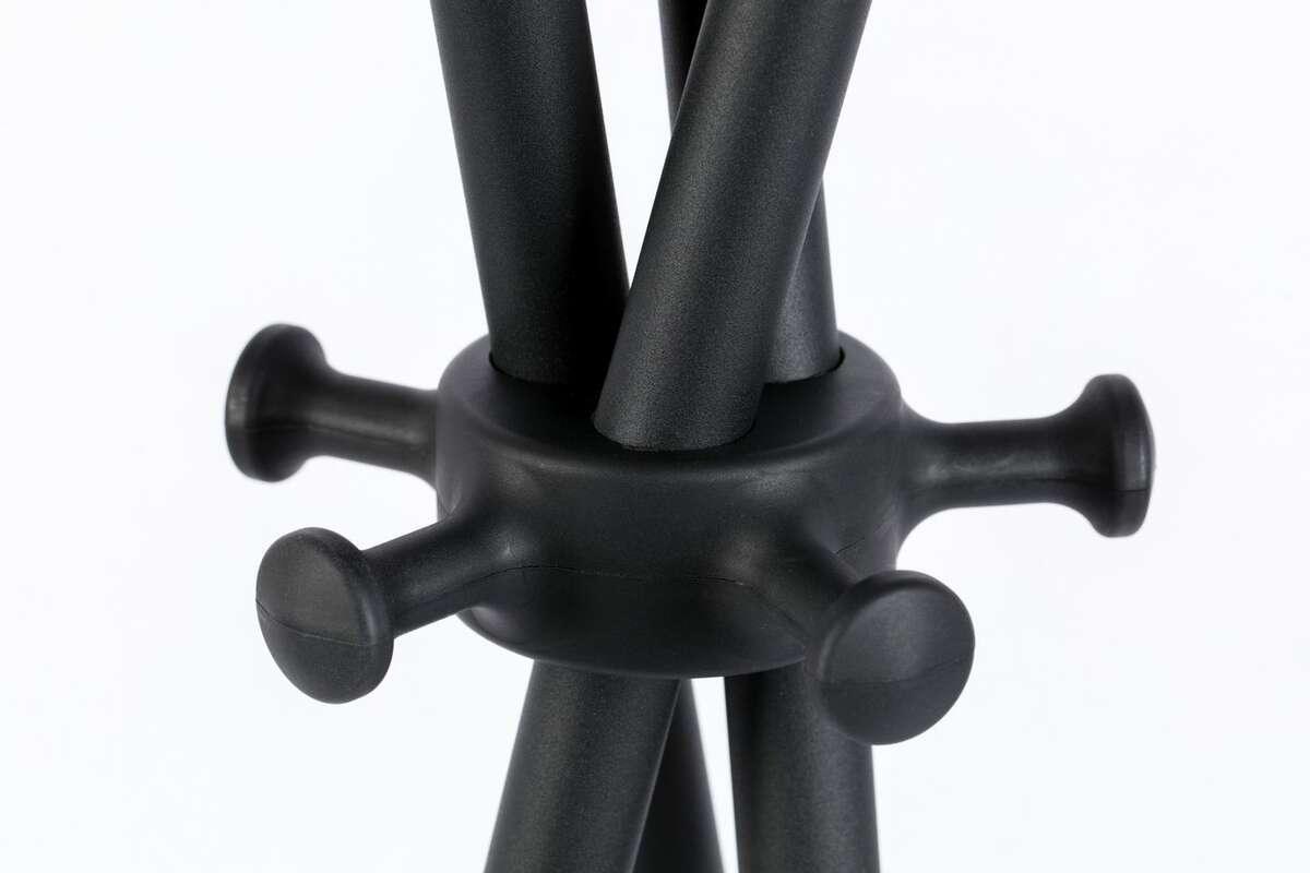 Stahl, aus dem dieses Möbelstück größtenteils gefertigt wurde, wurde schwarz lackiert, damit es möglichst lange die Gäste verzaubern kann. Die interessante Kombination der pulverbeschichteten Oberfläche ermöglicht das Aufhängen großer Mengen an Jacken und Sweatshirts.
