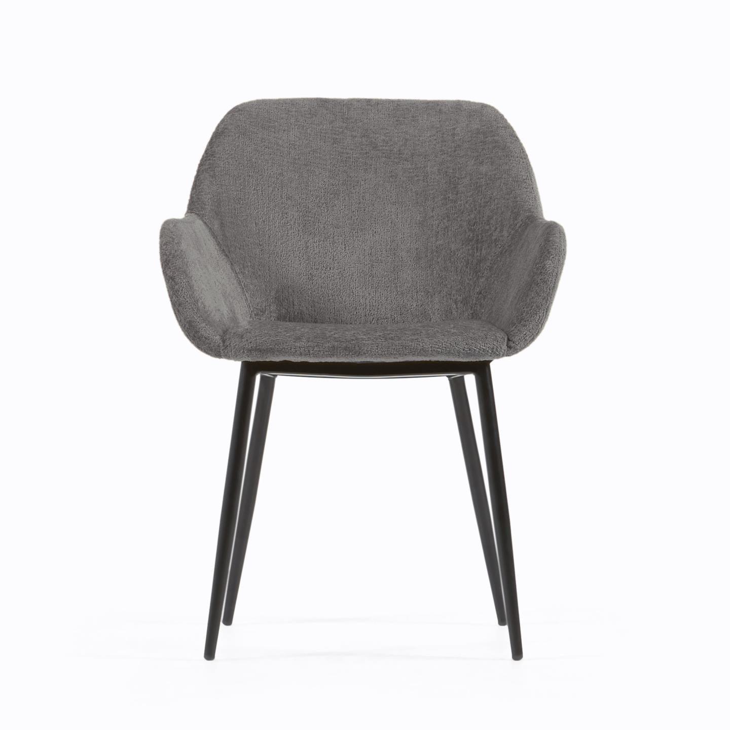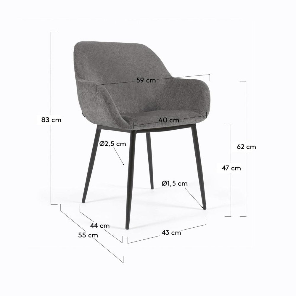 Die Metallbeine mit schwarzem Finish bilden ein kontrastierendes, modernes Element, das dem Stuhl Charakter und Stabilität verleiht. Diese Kombination aus zeitgenössischem Design und außergewöhnlichem Material sorgt dafür, dass der Stuhl Konna nicht nur seine funktionalen Aufgaben erfüllt, sondern auch zu einem Schmuckstück des Raumes wird.