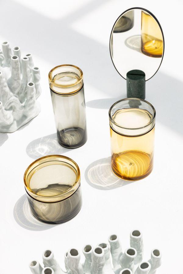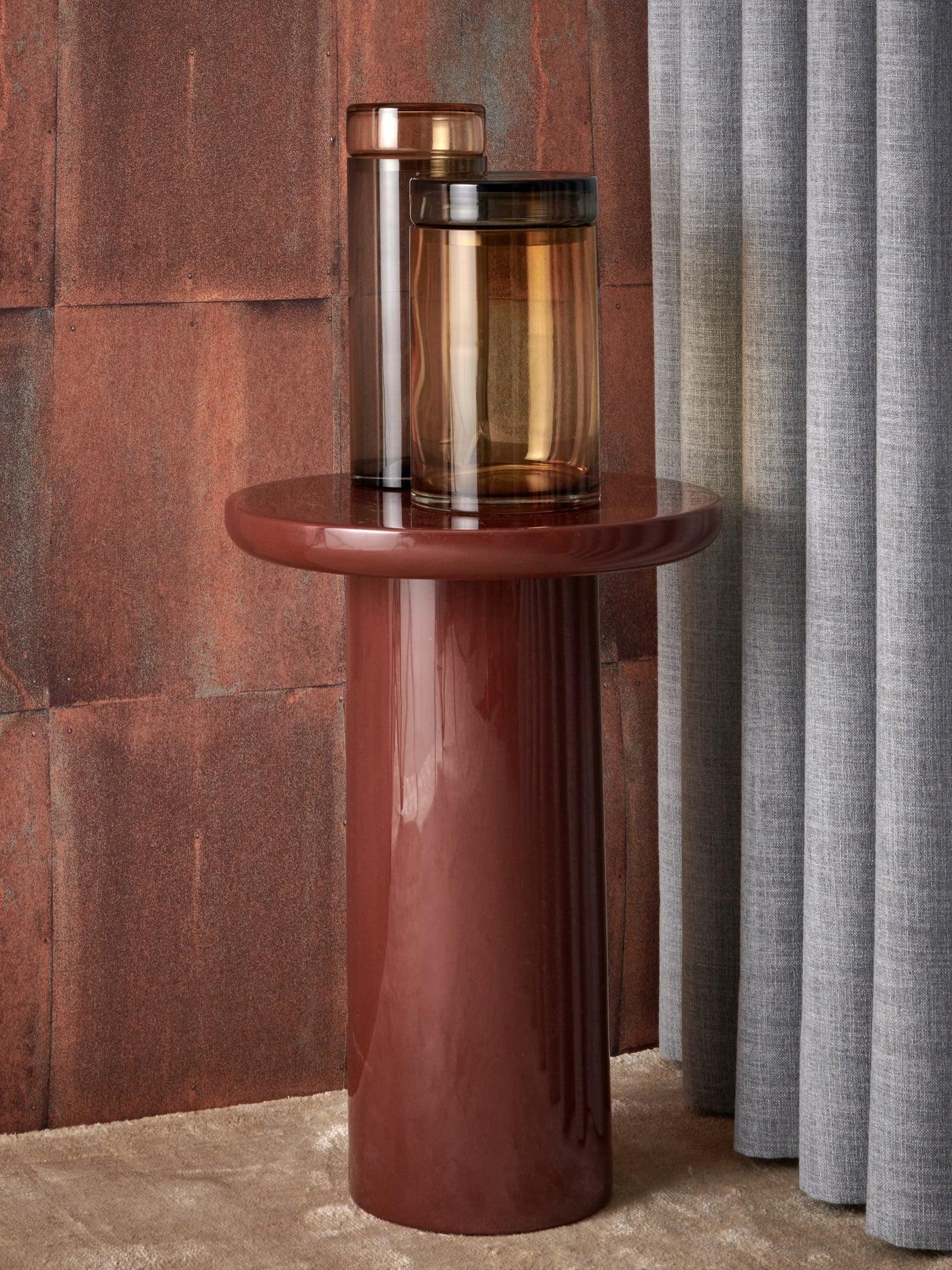 Set von Gläsern Caps and Jars in der Farbe Braun sind Modelle aus farbigem Glas, individuell geblasen und handbearbeitet. Dieses Set ist nicht nur elegant, sondern vor allem funktional. Die tägliche Nutzung der Gläser Caps and Jars wird Ihnen das Arbeiten in der Küche erleichtern und dem Raum Klasse und Stil verleihen.