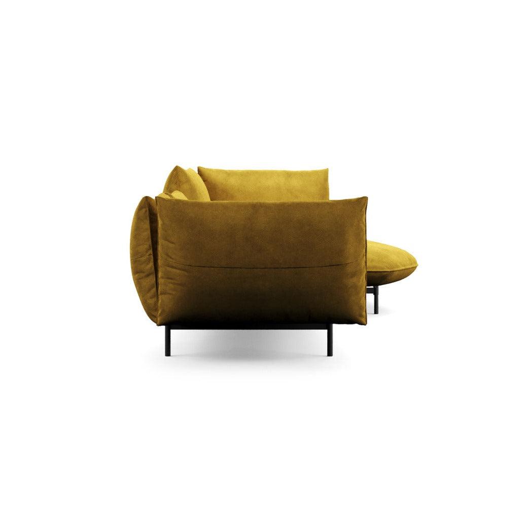 Das senfgelbe Ecksofa Ice Breaker bietet viele neue Gestaltungsmöglichkeiten dank der verfügbaren Rückenlehnen in verschiedenen Höhen. Die Möglichkeit, die Höhe der Rückenlehne auszuwählen, ermöglicht es, das Sofa an individuelle Vorlieben anzupassen und sorgt für noch mehr Komfort bei der Nutzung.