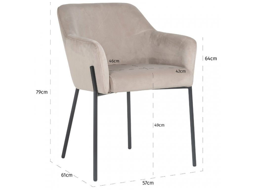 Stuhl Fay ist eine großartige Möglichkeit, Ihrem Innenraum eine subtile Eleganz einzuführen. Es ist ein Möbelstück, das nicht nur Komfort bietet, sondern auch einen einzigartigen Charakter und Stil Platz verleiht. Das luxuriöse Finish beginnt mit Polsterung mit Veloursstoff mit zartem Beige. Dies ist nicht nur ästhetisch, sondern auch praktisch, da der samtige Stoff den Stuhl beim Sitzen außergewöhnlicher Komfort verleiht. Beige Color führt Subtilität und Harmonie in den Innenraum ein und schafft einen Ort, der Entspannung und Frieden fördert.