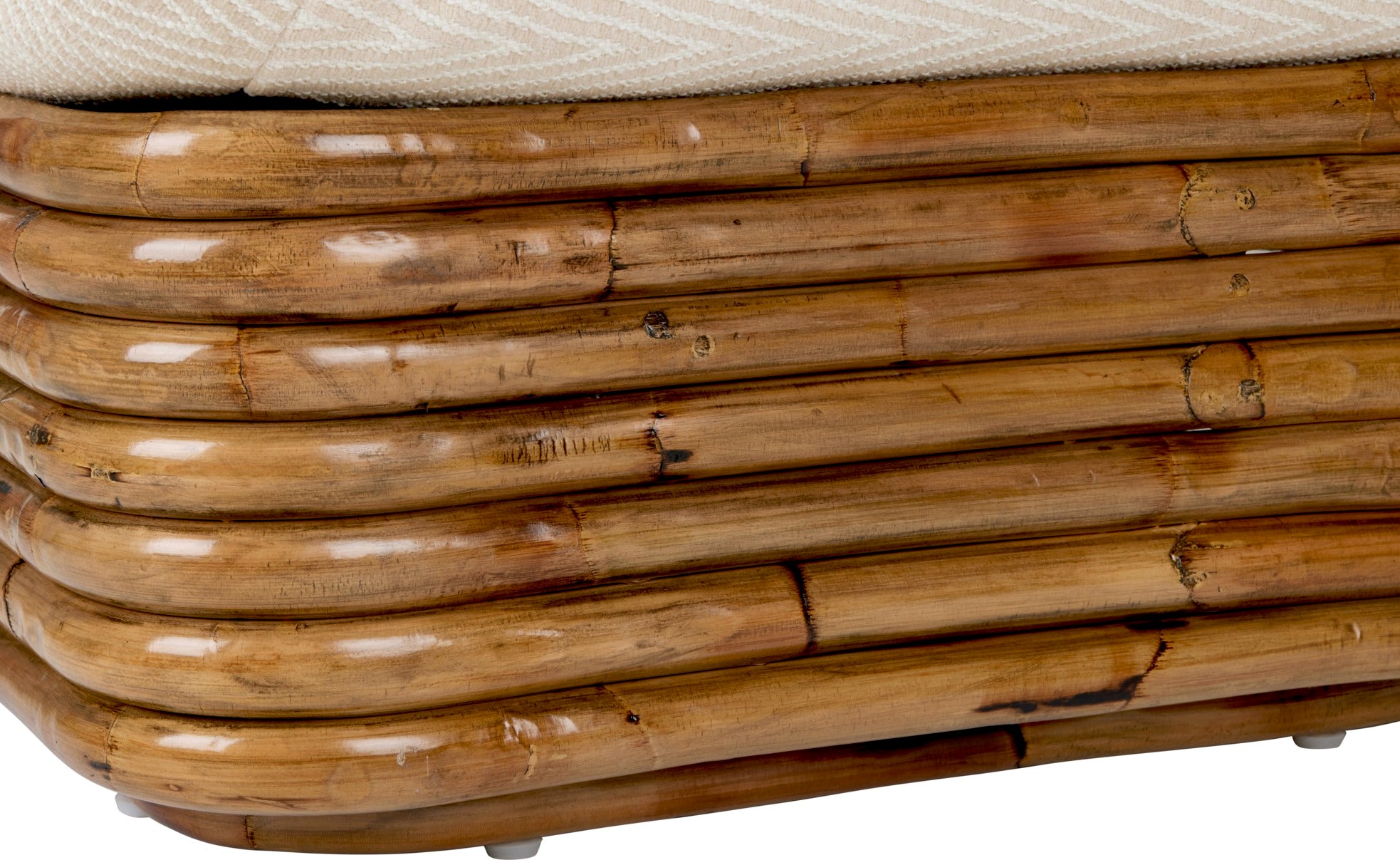 Die raffinierte Silhouette, die auf einer handgeformten Konstruktion aus Rattan basiert, strahlt Eleganz und Leichtigkeit aus. Die großzügigen, weichen Kissen, die vollständig mit hochwertigem Stoff bezogen sind, bieten außergewöhnlichen Komfort beim Entspannen, und die charakteristischen, spiralförmig gewundenen Linien verleihen dem Sessel eine skulpturale Dimension. Mit seiner tiefen Sitzfläche und der 115-Grad-Neigung der Rückenlehne lädt Bohemian ’72 geradezu zum Entspannen ein – sowohl im Wohnzimmer als auch im verglasten Wintergarten oder Sunroom.