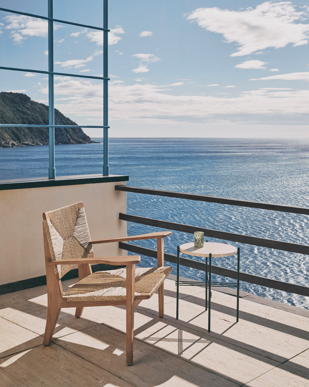 Sitzfläche und Rückenlehne sind handgeflochten aus wasserdichter und UV-beständiger Polyethylenfaser, die natürliches Hyazinthengeflecht perfekt imitiert. Das charakteristische Flechtmuster verleiht dem Stuhl ein edles Aussehen, und die ergonomische Form bietet außergewöhnlichen Ruhekomfort. Der F-Chair Outdoor eignet sich perfekt für Terrassen und Gärten sowie für Entspannungsbereiche am Pool und verbindet Langlebigkeit mit zeitlosem Design.
