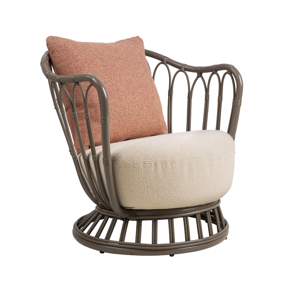 Die organische Silhouette des Stuhls – mit einer sanft abgerundeten Sitzfläche und einer geschwungenen Rückenlehne – wurde durch tiefe, komfortable Kissen ergänzt, die mit einem wasser- und UV-beständigen Stoff bezogen sind. Dadurch bietet Grace nicht nur außergewöhnlichen Komfort, sondern auch Langlebigkeit – selbst bei ganzjähriger Nutzung im Freien. Er eignet sich hervorragend als solistisches Highlight auf der Terrasse, dem Balkon oder im Garten, und im Set – schafft er eine elegante, harmonische Entspannungszone. Seine leichte Konstruktion ermöglicht ein einfaches Umsetzen – zwischen Innenraum und Außenbereich.