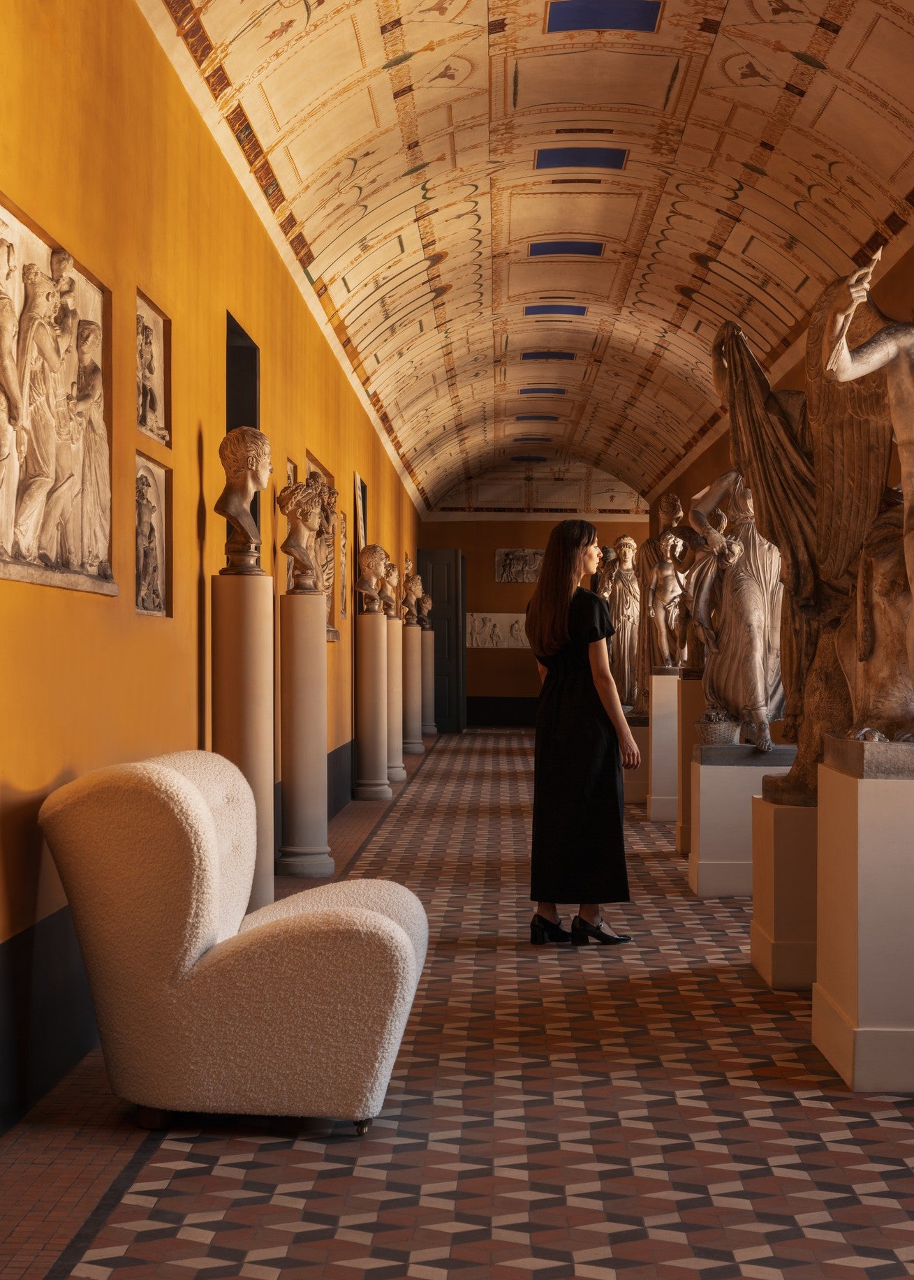 Sessel The Tired Man ist ein Symbol des dänischen Designs, entworfen im Jahr 1936 von Flemming Lassen und präsentiert während der Copenhagen Cabinetmakers’ Guild Exhibition. Die charakteristische, sanft abgerundete Form sollte ein Gefühl von Sicherheit und Komfort vermitteln, wie ein „Eisbär in den Armen seiner Mutter“. Es ist eine Kombination aus meisterlicher Handwerkskunst, Eleganz und Bequemlichkeit, die im Laufe der Jahre zu einem Symbol des skandinavischen Designs geworden ist.