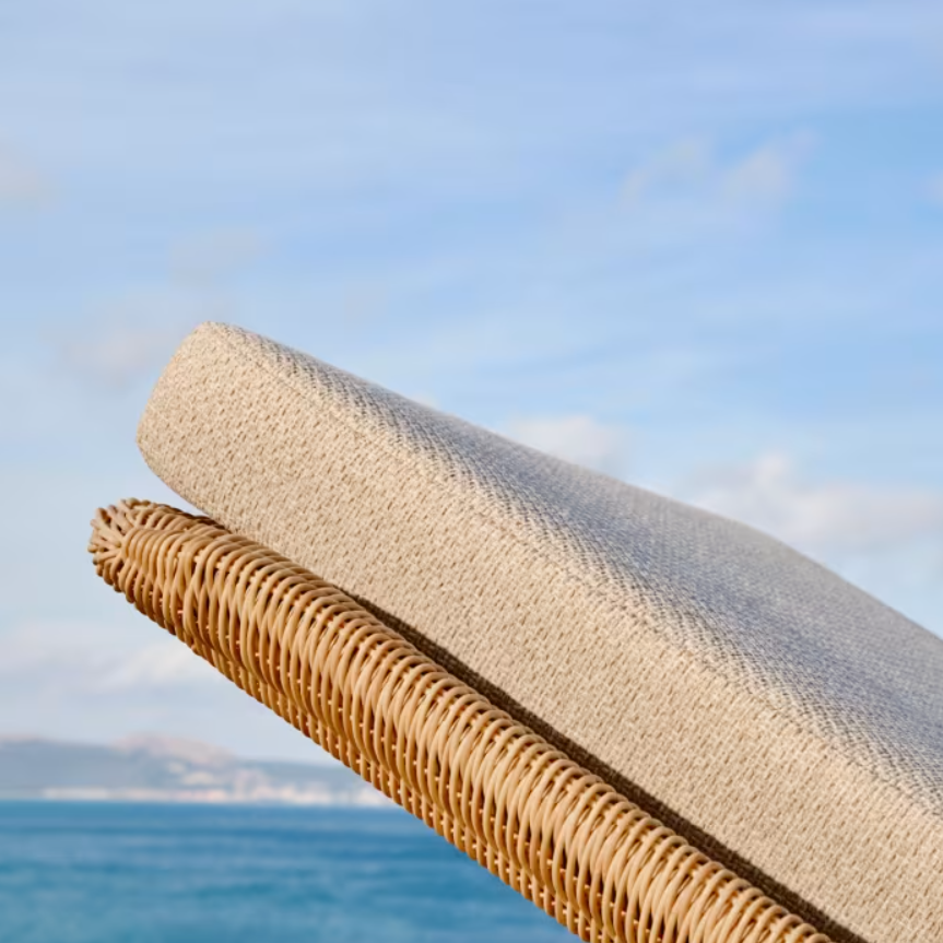 Details zum Sitzmaterial: Massivholz, synthetischer Rattan, Stoff, Schaum