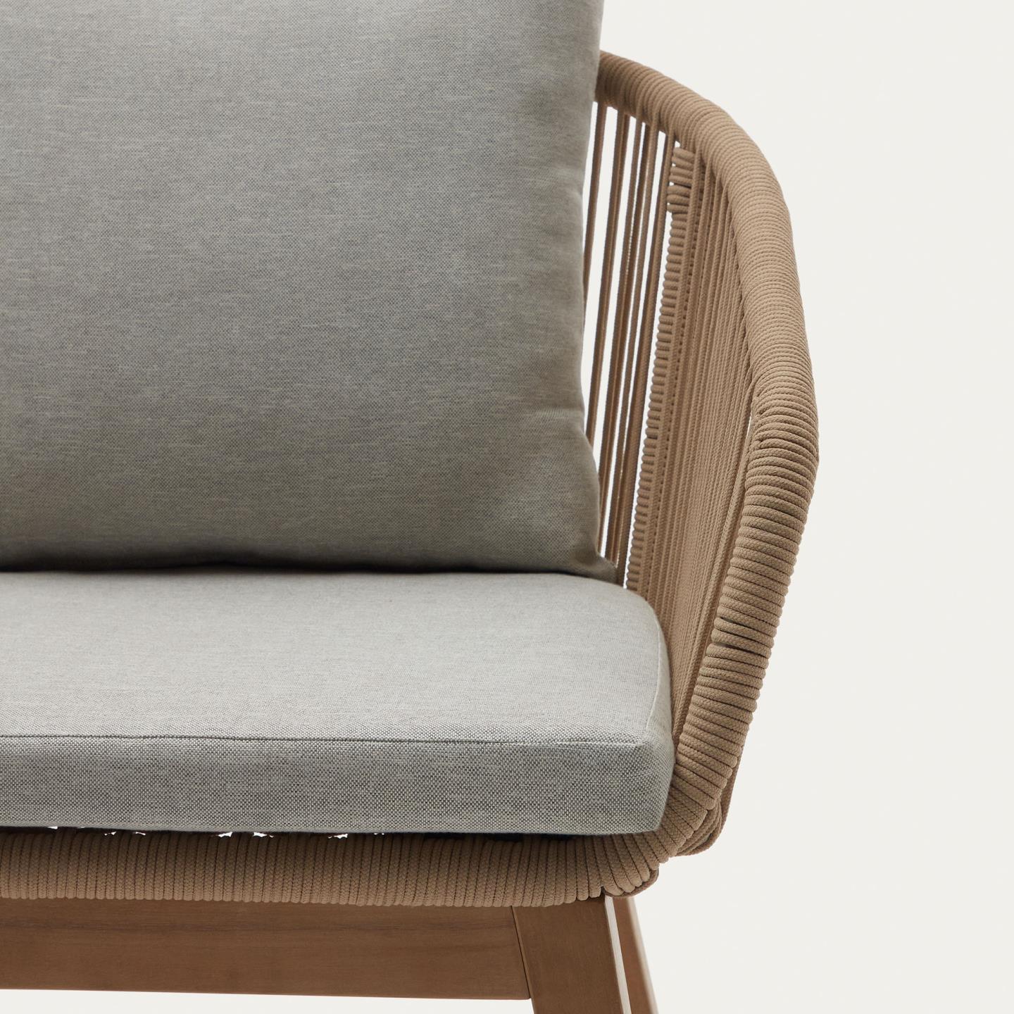 Details des Sitzmaterials: Acacia Wood (Acacia auriculformis), Seil, Schaum, Acrylfasern, Stoff
