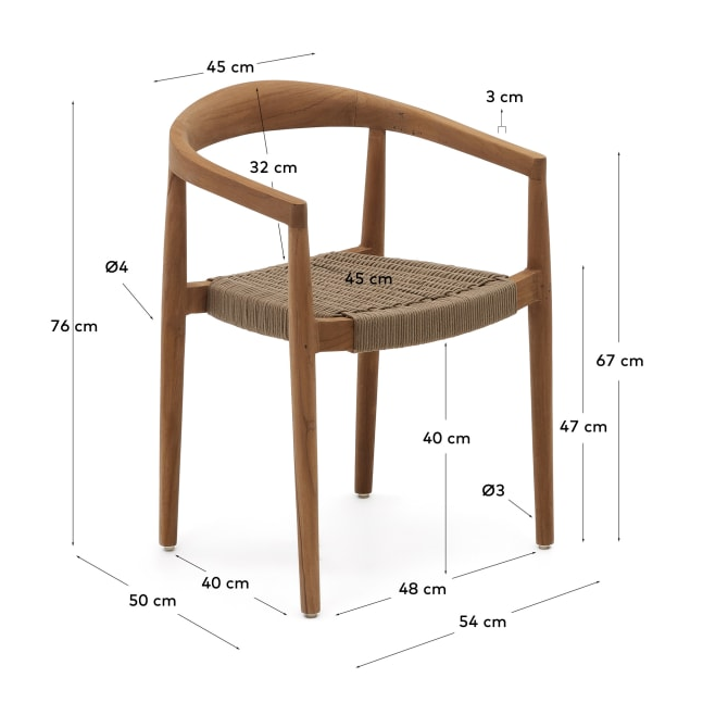 Krzesło ogrodowe YDALIA lite drewno tekowe z beżową liną La Forma    Eye on Design