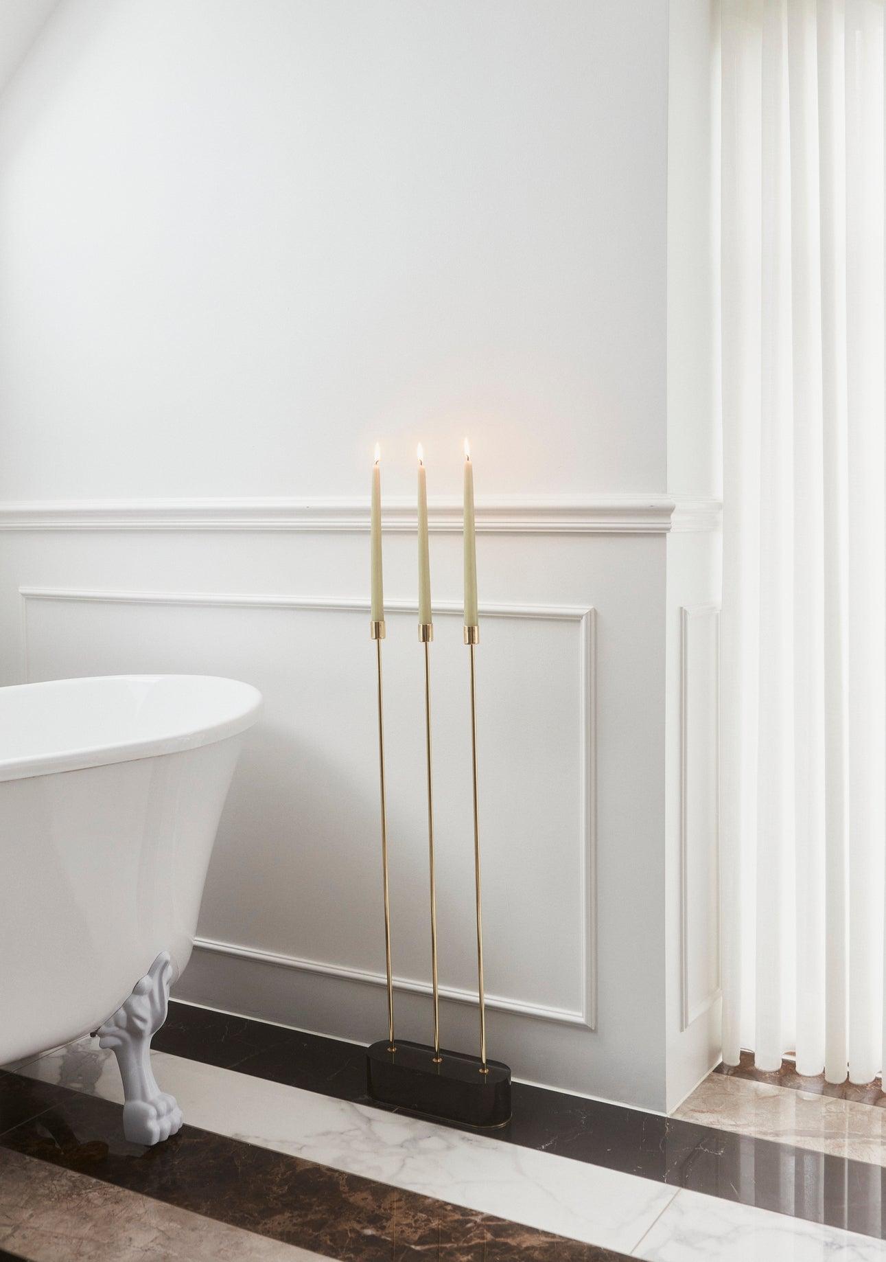 Dank der soliden Marmorbasis und den exquisiten Details aus Messing oder Schwarz werden die Kerzenhalter Grasil in jedem Raum zum Blickfang. Der Bodenkerzenhalter ist das ideale Element für kleine Räume, und die natürlichen Marmorvarianten passen zu jedem Stil. Bringen Sie diesen eleganten Akzent in Ihr Zuhause und genießen Sie das Licht der Kerzen an herbstlichen Abenden.