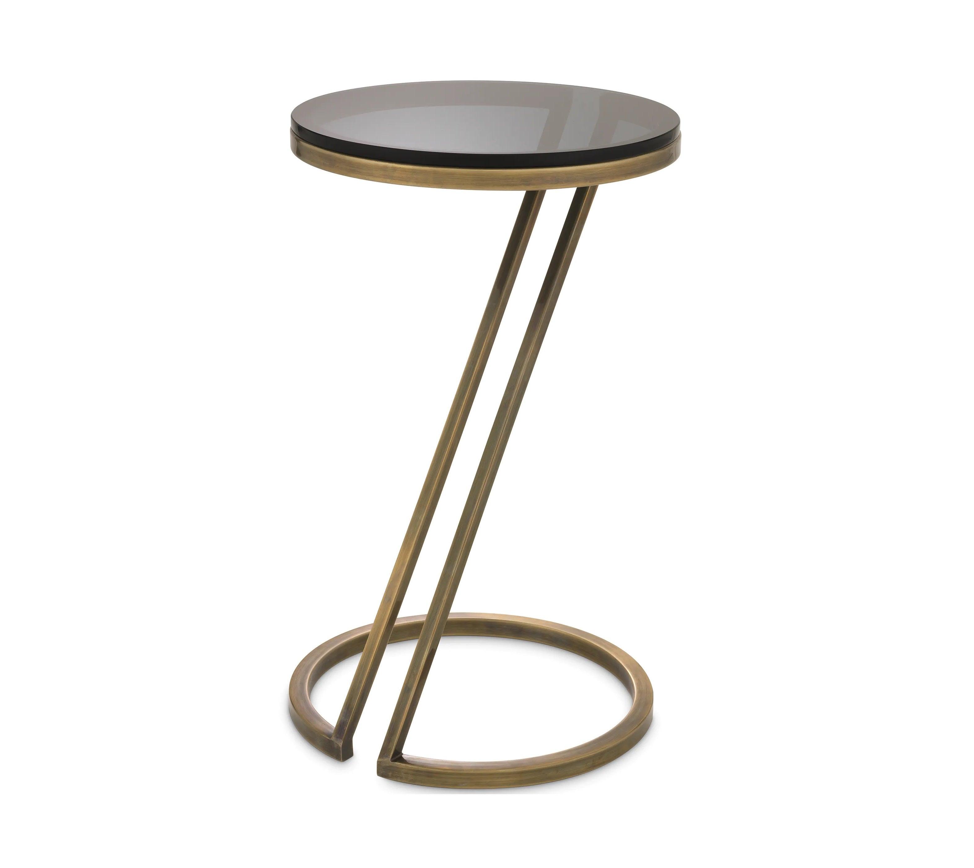 Beistelltisch Falcone ist ein Meisterwerk der Handwerkskunst und des Designs, das jedes Interieur bereichern wird. Seine subtile Konstruktion mit einem Vintage-Finish zieht die Blicke auf sich und weckt Erinnerungen an vergangene Epochen der Eleganz. Die Tischplatte aus rauchigem Glas, sanft über das schräg gestellte Gestell erhoben, vermittelt das Gefühl, in der Luft zu schweben, und zieht mit ihrer Leichtigkeit und Finesse die Aufmerksamkeit auf sich.
