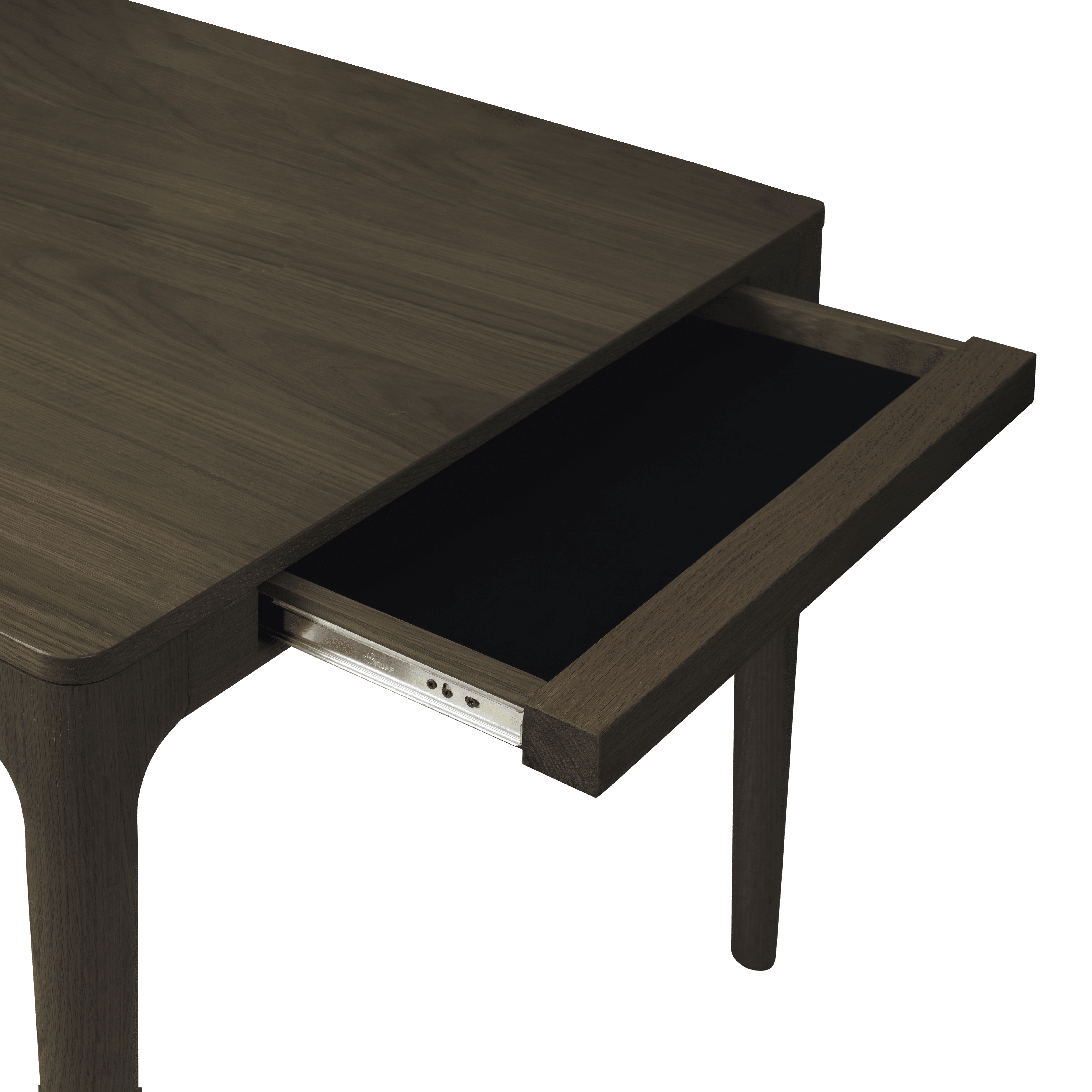 Der Tisch bietet bequem Platz für bis zu 12 Personen und ist in drei Farben erhältlich: natürlichem Eichenholz, dunkler Eiche und schwarzer Eiche. Die Eichen-Version ist auch mit dem Nanolaminat FENIX® in den Farbtönen Wolkengrau, Moosgrün und Obsidian schwarz erhältlich, was die natürliche Schönheit des Holzes unterstreicht.