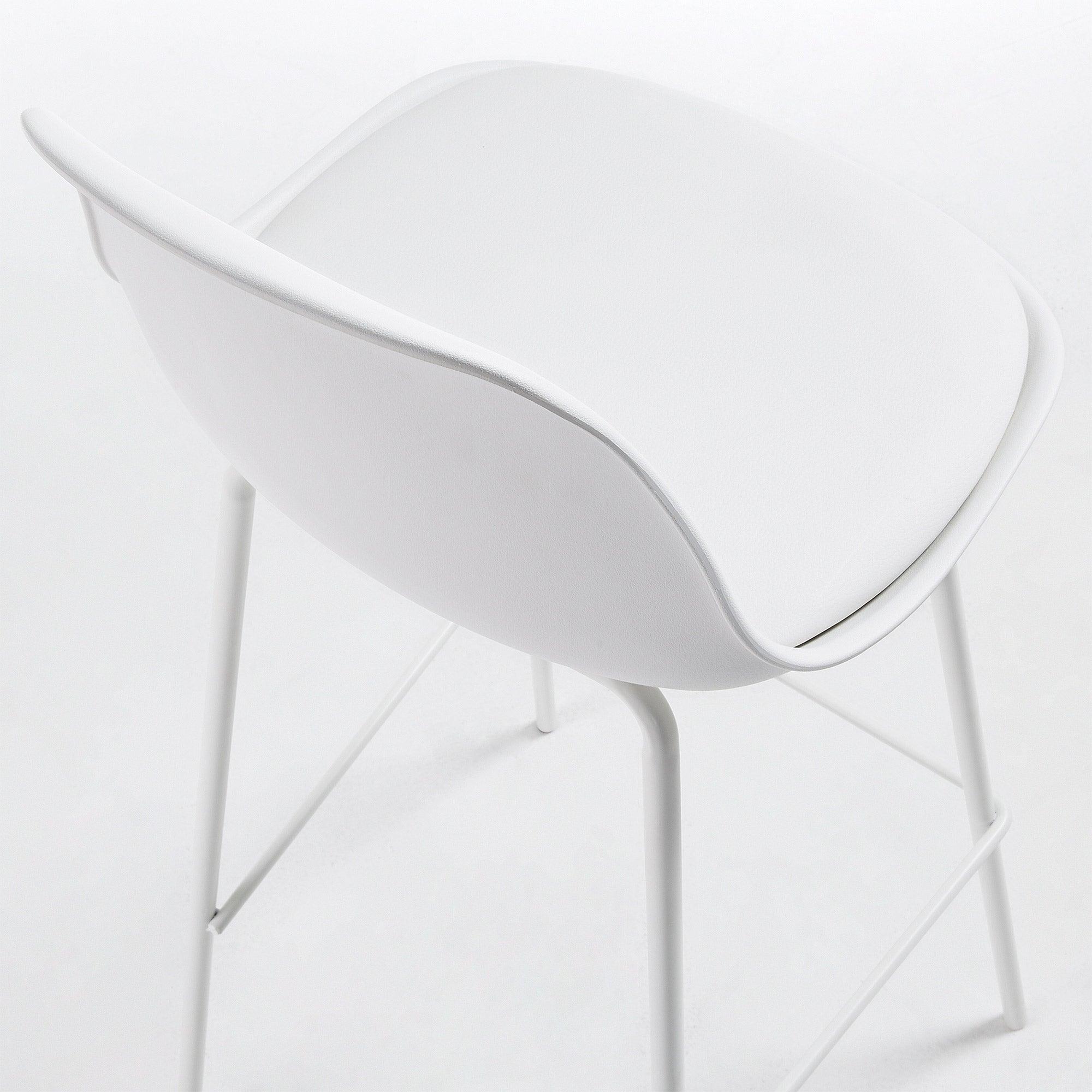 Der Stahlrahmen, auf dem der Hocker ruht, garantiert Solidität und Langlebigkeit und sorgt gleichzeitig für ein leichtes Design. Dieser weiße Barhocker begeistert nicht nur mit seinem modernen Aussehen, sondern erfüllt auch hervorragend seine Funktion, indem er Komfort und Bequemlichkeit beim Sitzen bietet.