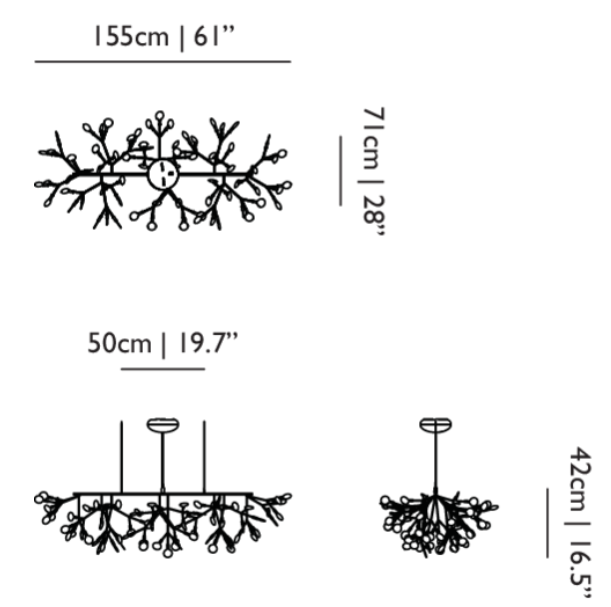 Kronleuchter Heracleum III Linear stellt eine neue Ära in der Beleuchtung ein. Schauen Sie sich genau an und Sie werden sehen, wie Blumen auf beiden Seiten sanft aufsteigen, dank, von dem Heracleum III -Linear ideal ist, um über lange Oberflächen wie einen Tisch im Speisesaal oder auf einer Kücheninsel zu hängen. Wie andere Projekte aus der Familie Herracleum werden schlanke Zweige von Electrosandwich vom Studio von Marcel Wanders angetrieben.