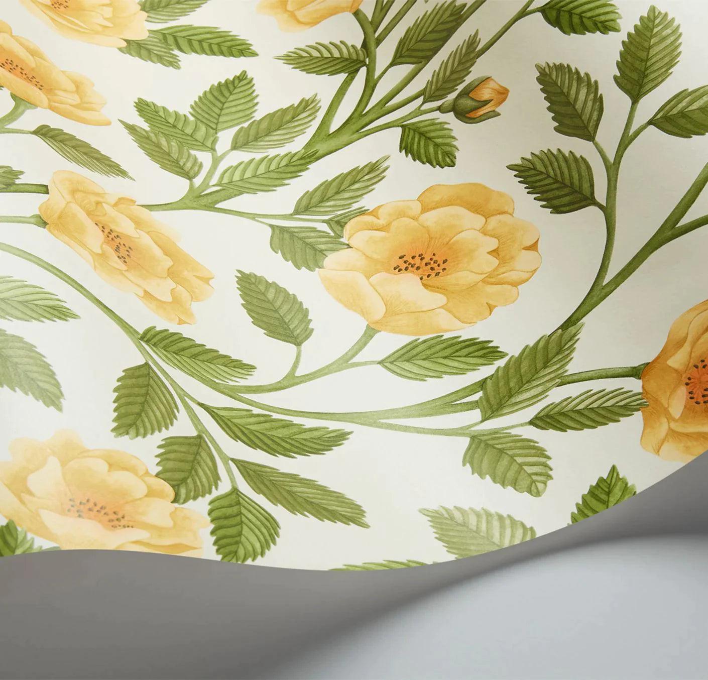 Tapete mit pflanzlichem Motiv von Blättern und Rosenblüten HRP GREAT MASTERS - Hampton Rosen Ocker