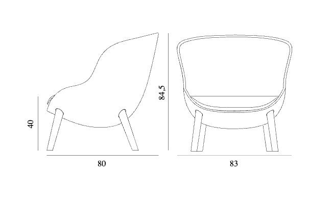 Hyg niedriger Sessel mit einer schwarzen Eichenbasis