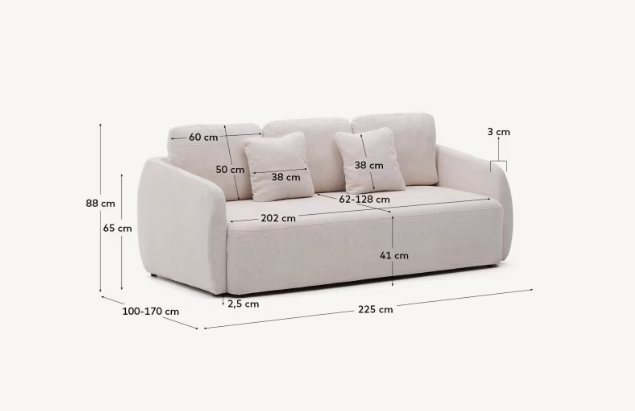 Sofa mit Schlaffunktion 3-sitzig LAIRA écru