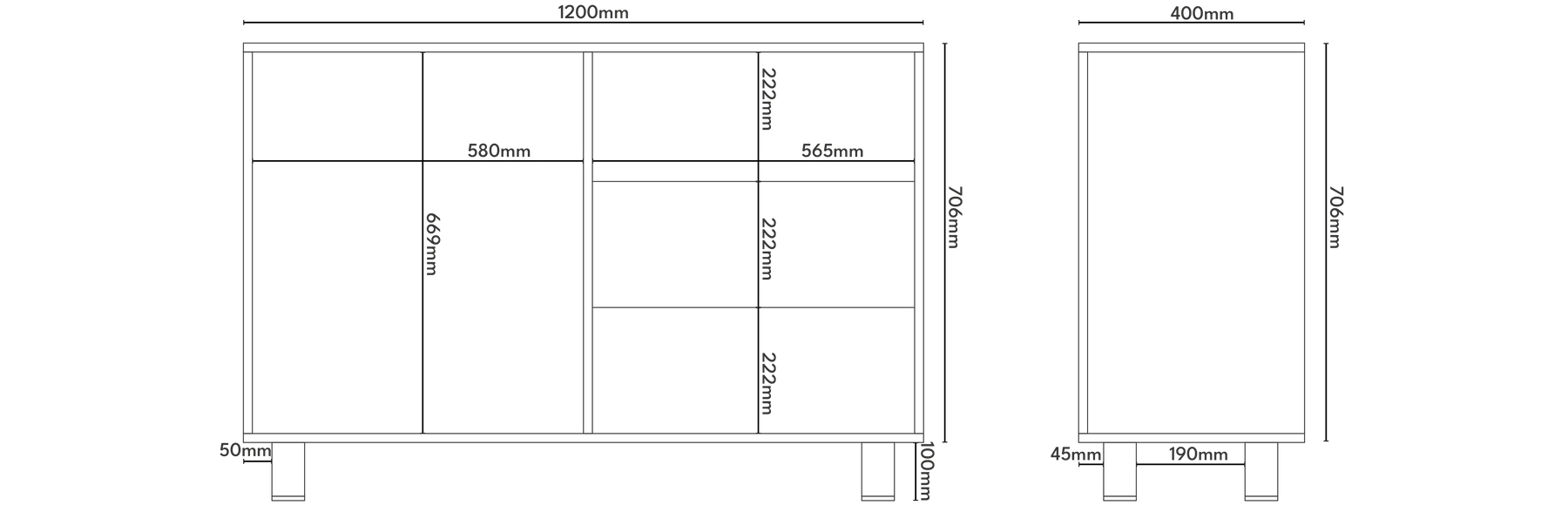 Materiały: Korpus: płyta meblowa, Wykończenie korpusu: lakier, Nóżki: lite drewno, Wykończenie nóżek: lakier