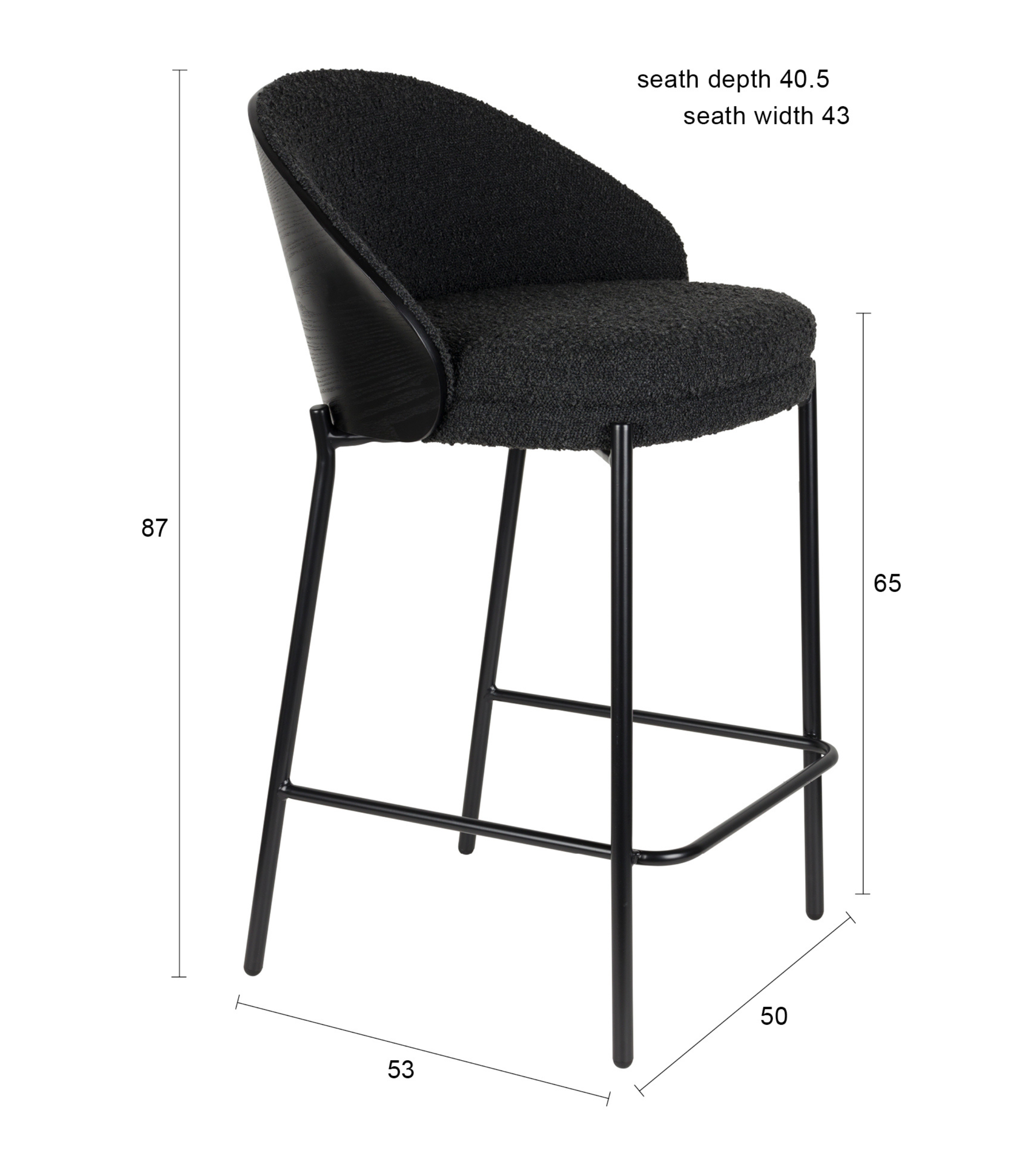 Barstuhl RODIN schwarz mit schwarzem Fuß