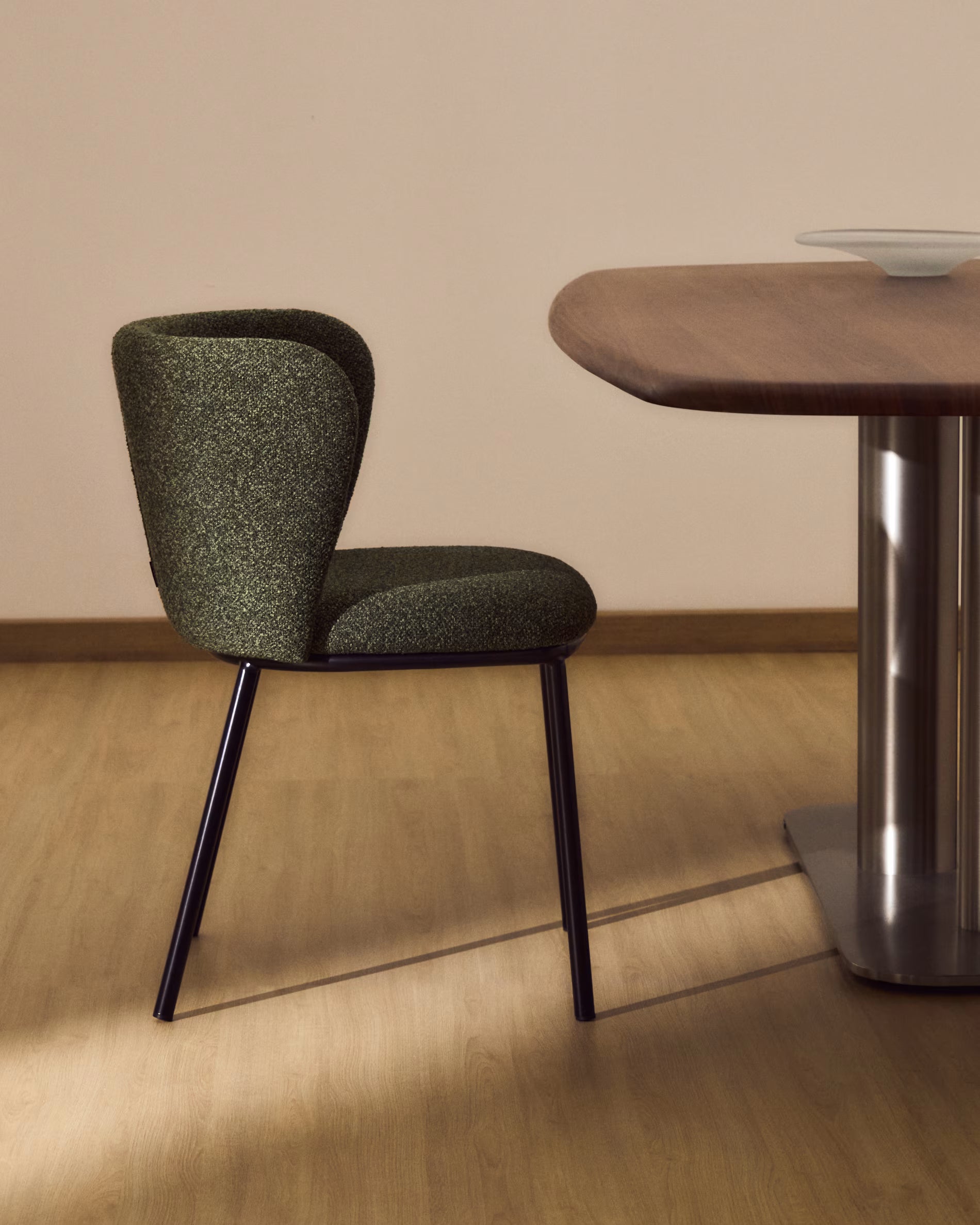 Stuhl CISELIA dunkelgrüner Chenille mit schwarzem Gestell